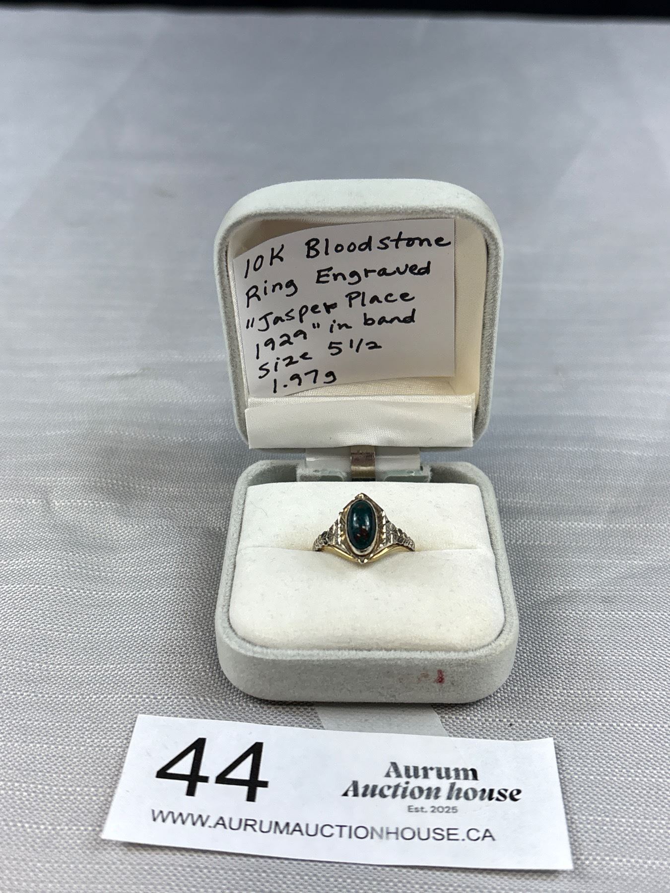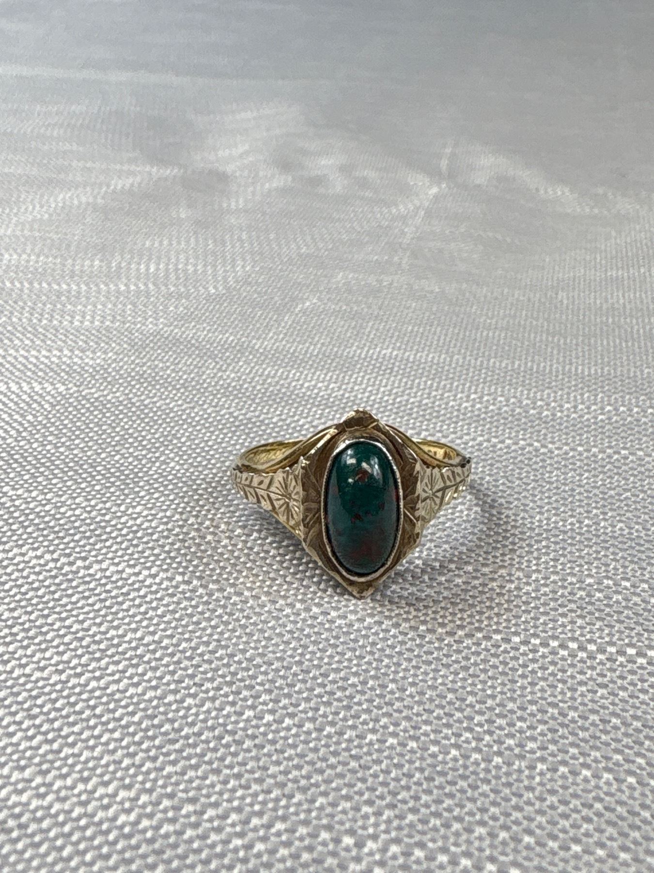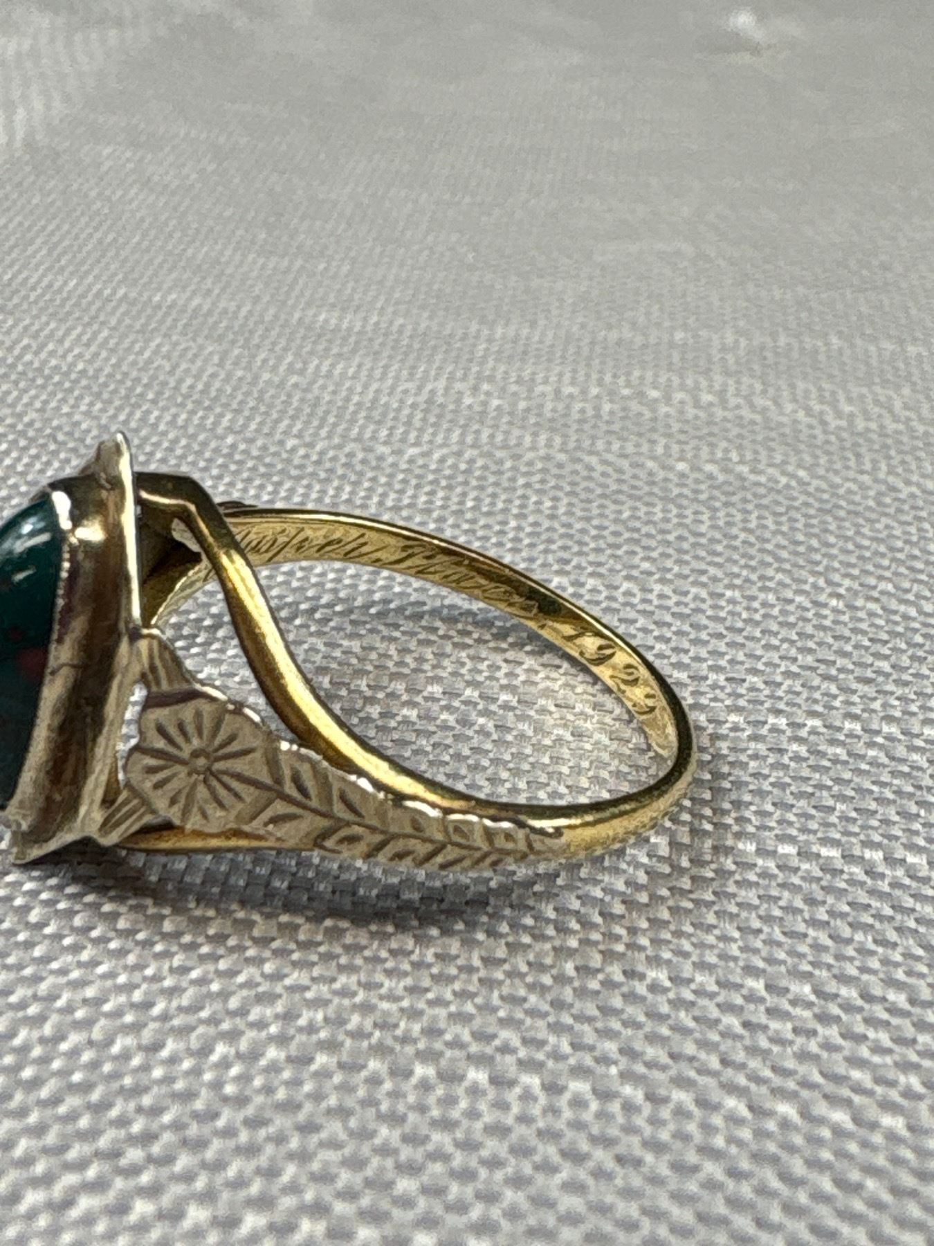 10K Bloodstone Ring Engraved "Jasper Place 1929" in Band Size 5.5 1.97 gr