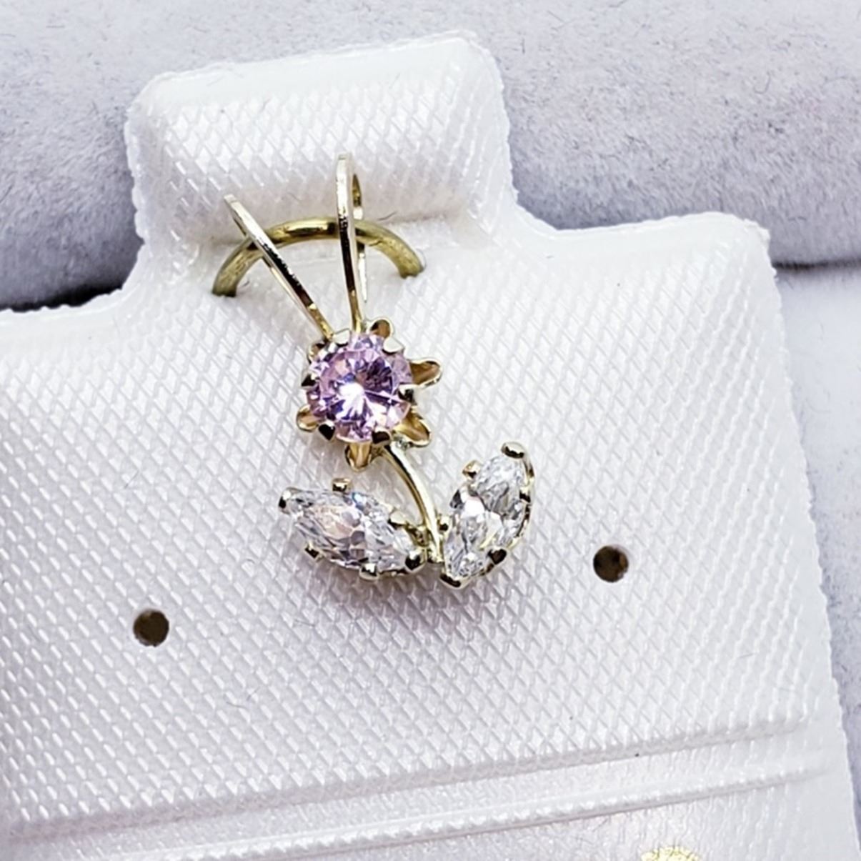 10K YELLOW GOLD CZ FLOWER SHAPED PENDANT. MADE IN CANADA. SUGGEST RETAIL VALUE $120 ESTIMATE $90 - $120.