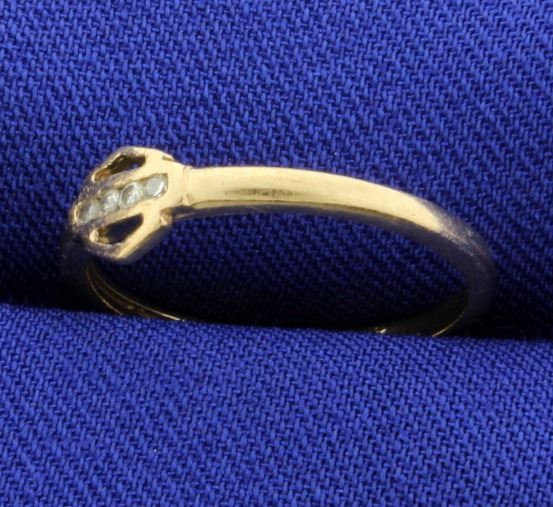 In 10K yellow gold it contains four .01ct round diamonds. Size 6 1/4 1.3g