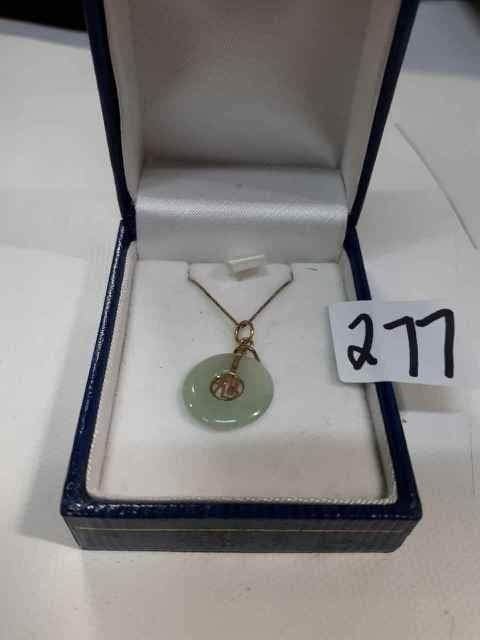 10K GOLD 18IN CHAIN/ROUND JADE PENDANT