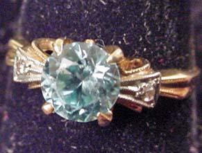 10K GOLD AND BLUE GEMSTONE LADIES RING - POSS. BLUE TOPAZ