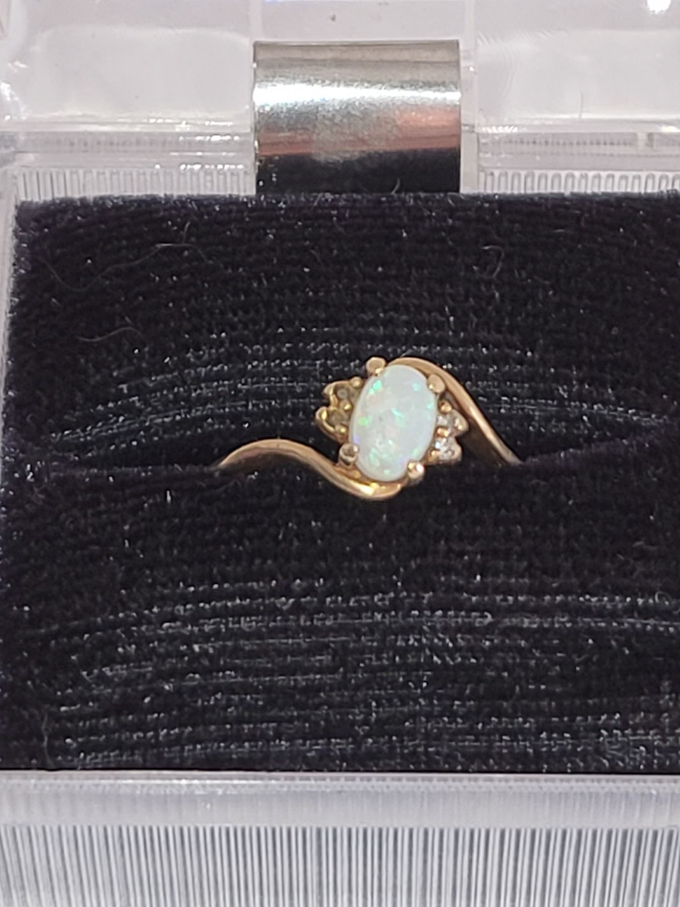 10K GOLD AND DIAMOND AND OPAL ESTATE RING. MISSING 3 SIDE DIAMONDS. SCRAP?