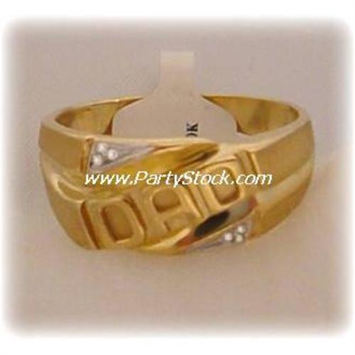 [137262556] MEN'S 10K YELLOW GOLD RING READS "DAD" AND IS EMBELLISHED WITH I-J/I2 DIAMONDS IN WHITE GOLD SETTING. <p> Wholesales at $145.00. <p>Our CLOSE OUT Price is $106.95!!! <p> We will size this ring for you at no extra charge! <p>This is a Close Out Item we bought from a Wholesale Jeweler in the Downtown Jewelry District of Los Angeles, who was going out of business. We were able to negotiate excellent pricing. Now, we're able to pass our HUGE savings on to YOU! Please note, our quantities are very limited and we will not be able to offer this item again, once it is sold out.