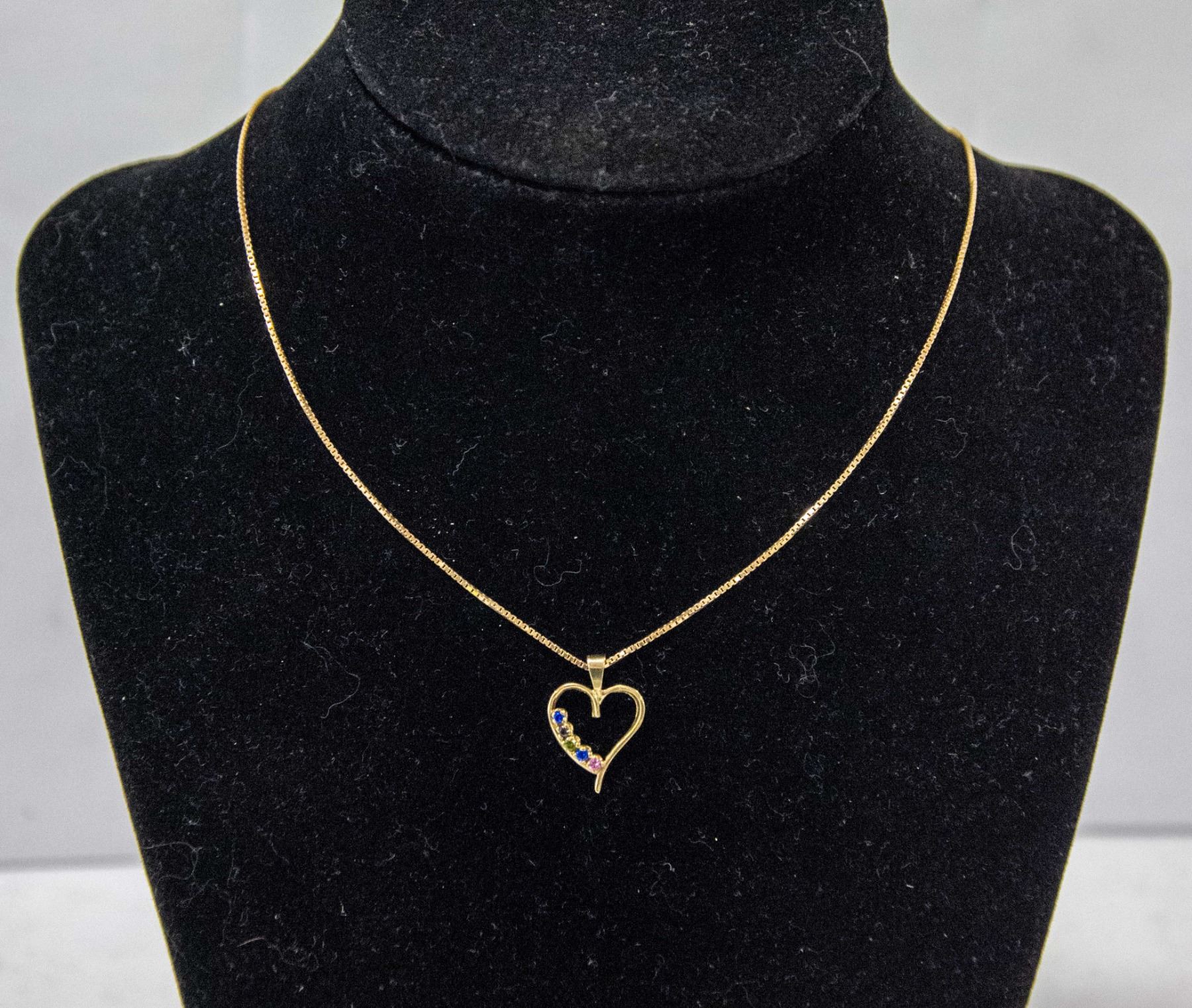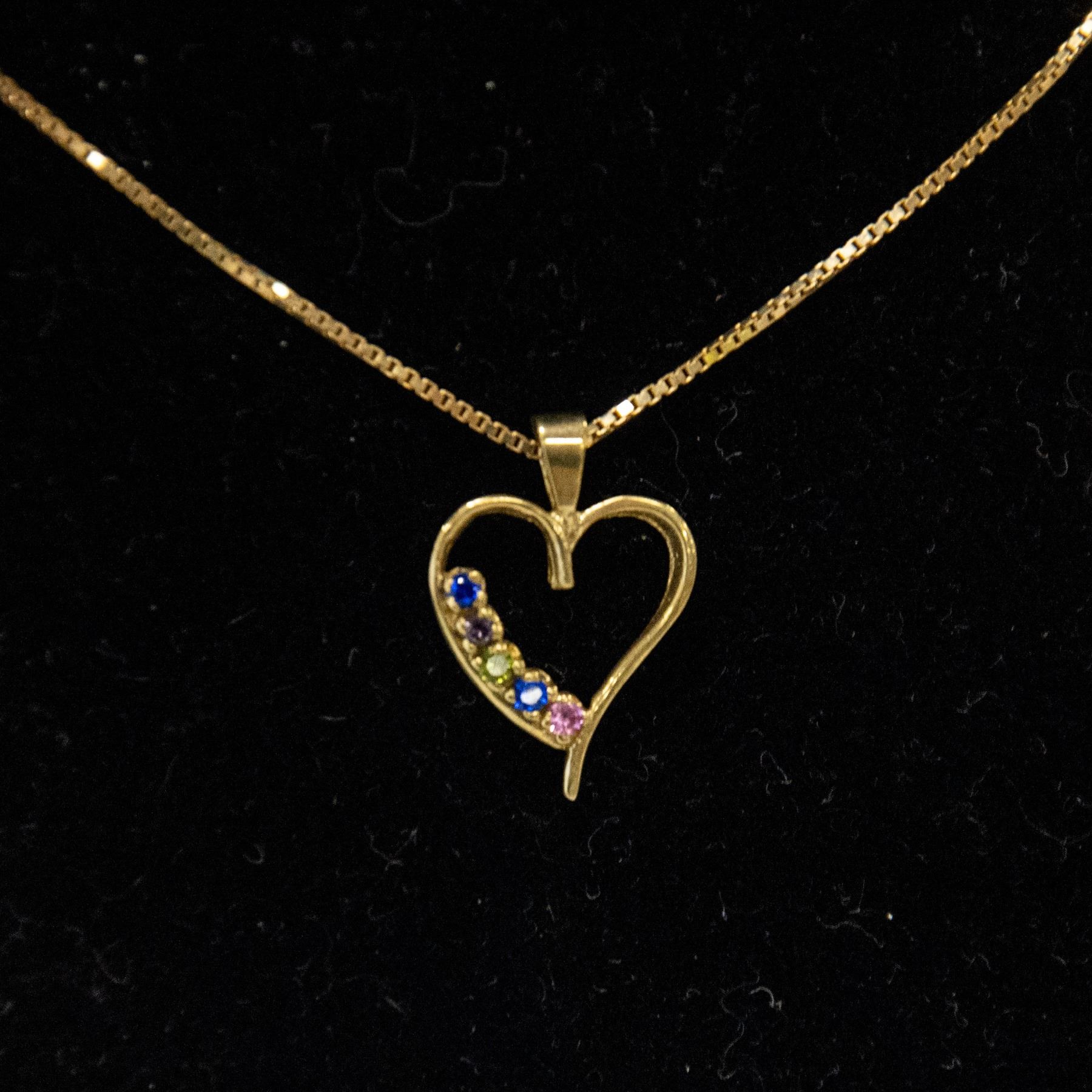 10K GOLD & SAPPHIRE HEART PENDANT - 21" LONG CHAIN