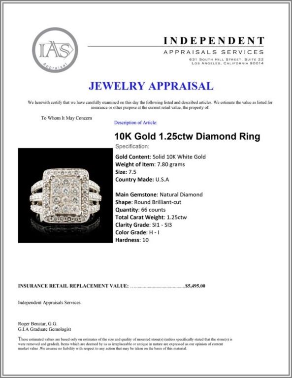 Total Carat Weight: 1.25ctw