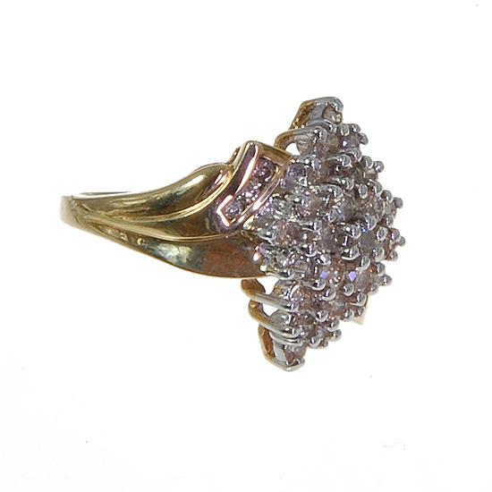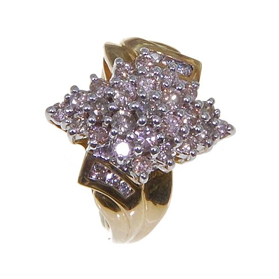 Beautiful 1 ct 31 Diamond 10k Gold ladies cluster ring. 5 gram setting weight. Retail tagged at $2895 when gold was at $350! per ounce; THIS RING IS A REAL VALUE!