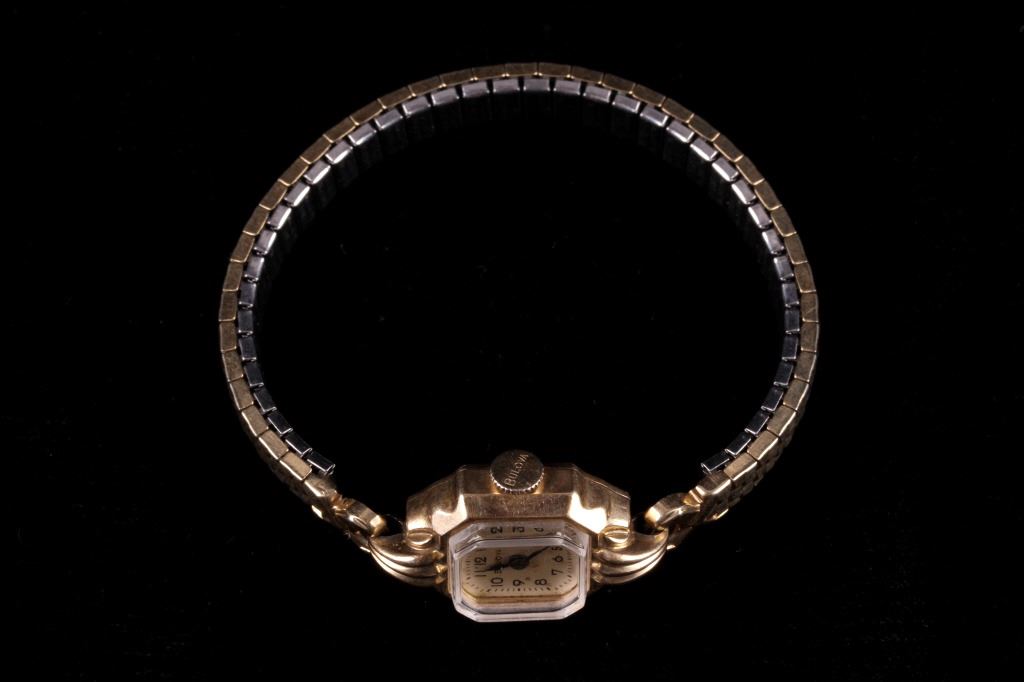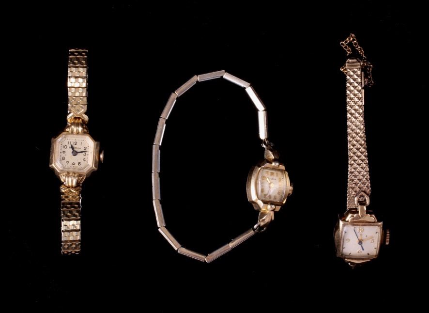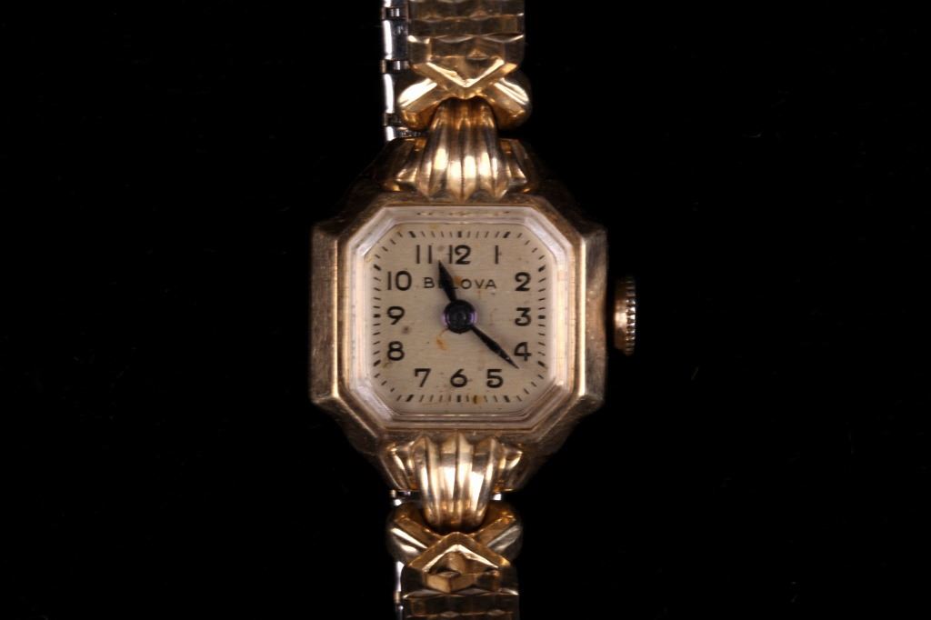 For your consideration is this 10K gold filled Bulova ladies watch collection. There are three watches in this collection; they all show wind up design with the Bulova name marked either on the face or on the back of the watches. The watches all show variety design to the watchbands with vintage era design. The condition of these watches is good and working, with no obvious signs of damage. The measurements of these watches range from 2 1/4" x 2 1/4" x 3/4" to 2 1/2" x 1 3/4" x 3/4".