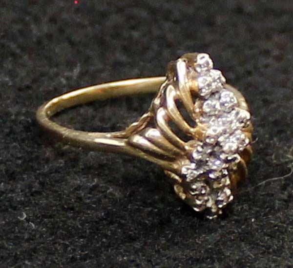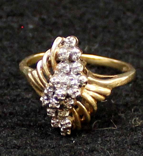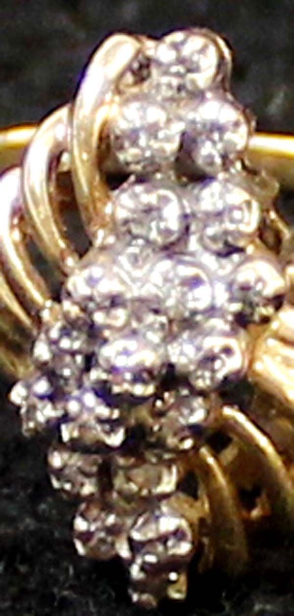 10K Gold Plate & Diamond Chip Ring, Size 7.75