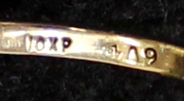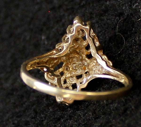 10K Gold Plate & Diamond Chip Ring, Size 7.75, measures 5/8'' x 3/8'' and is hallmarked