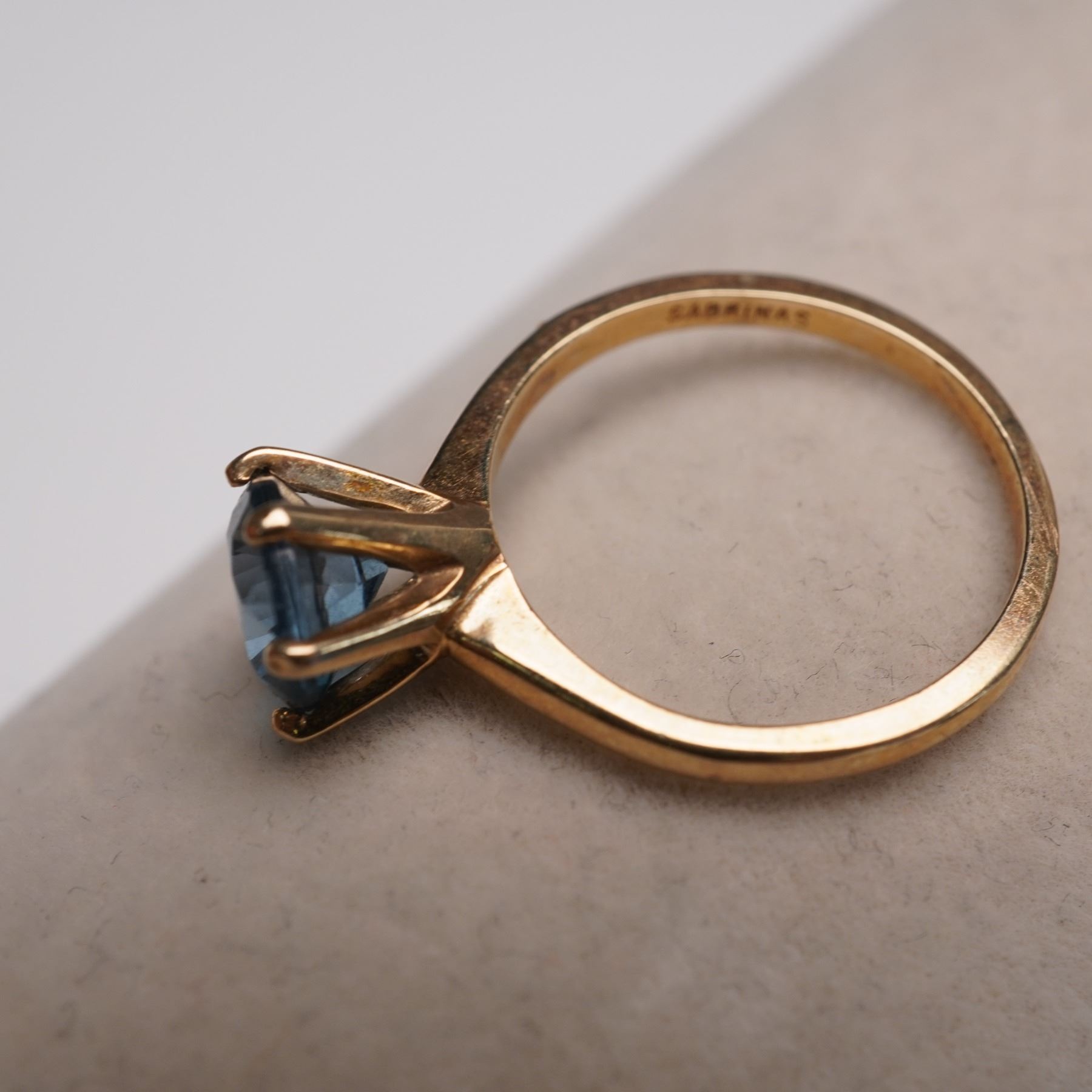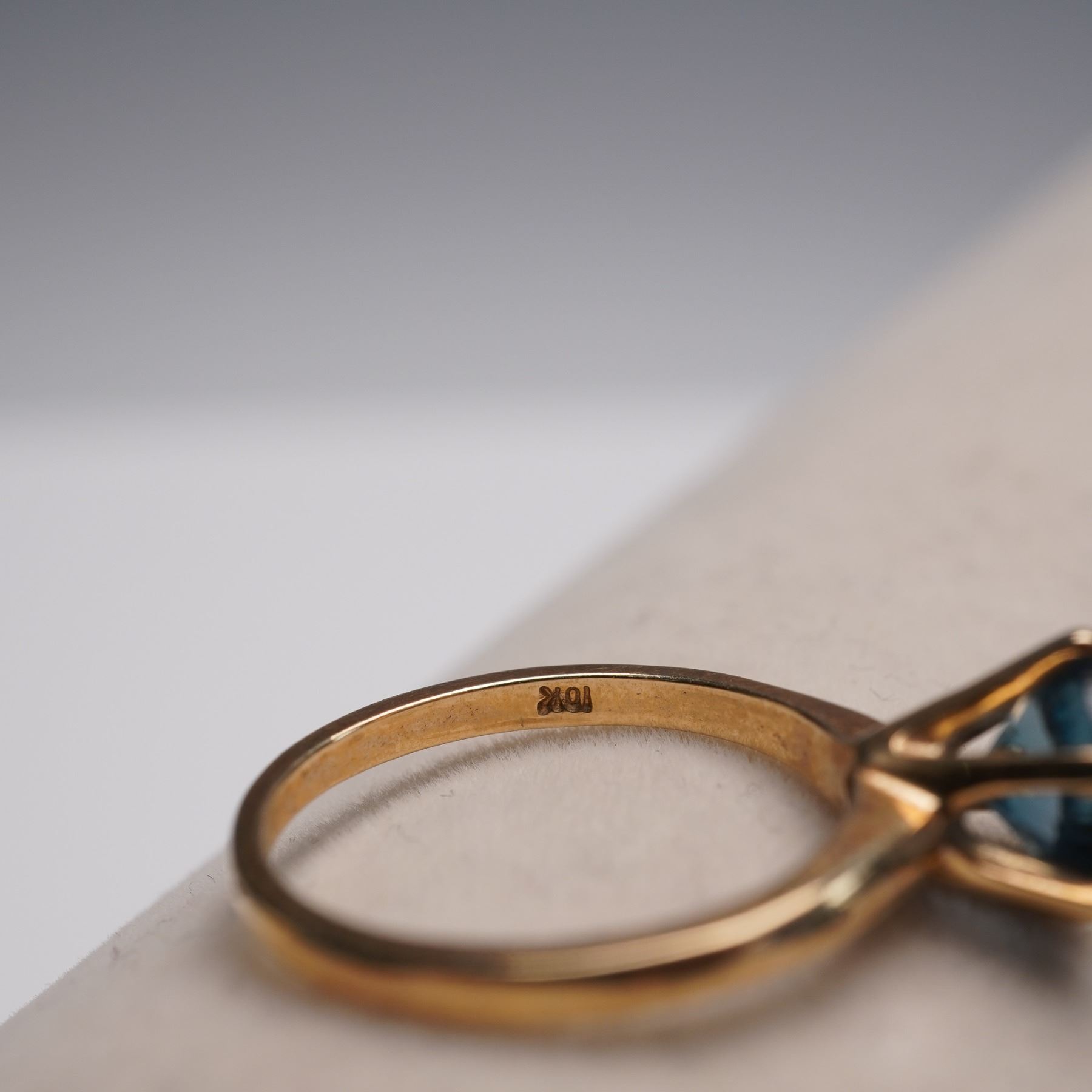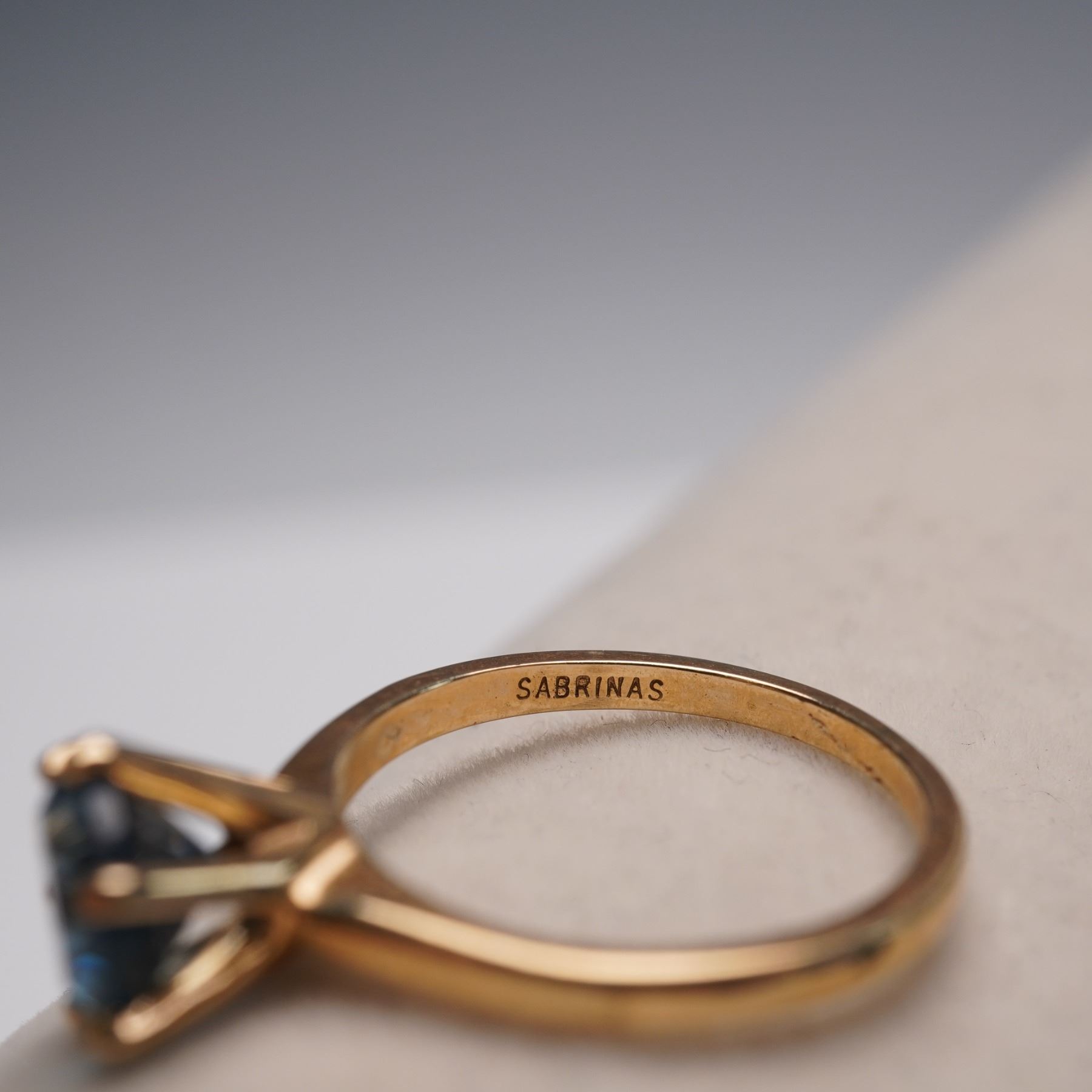 10K Gold Solitaire Ring with Blue Topaz, Marked SABRINAS