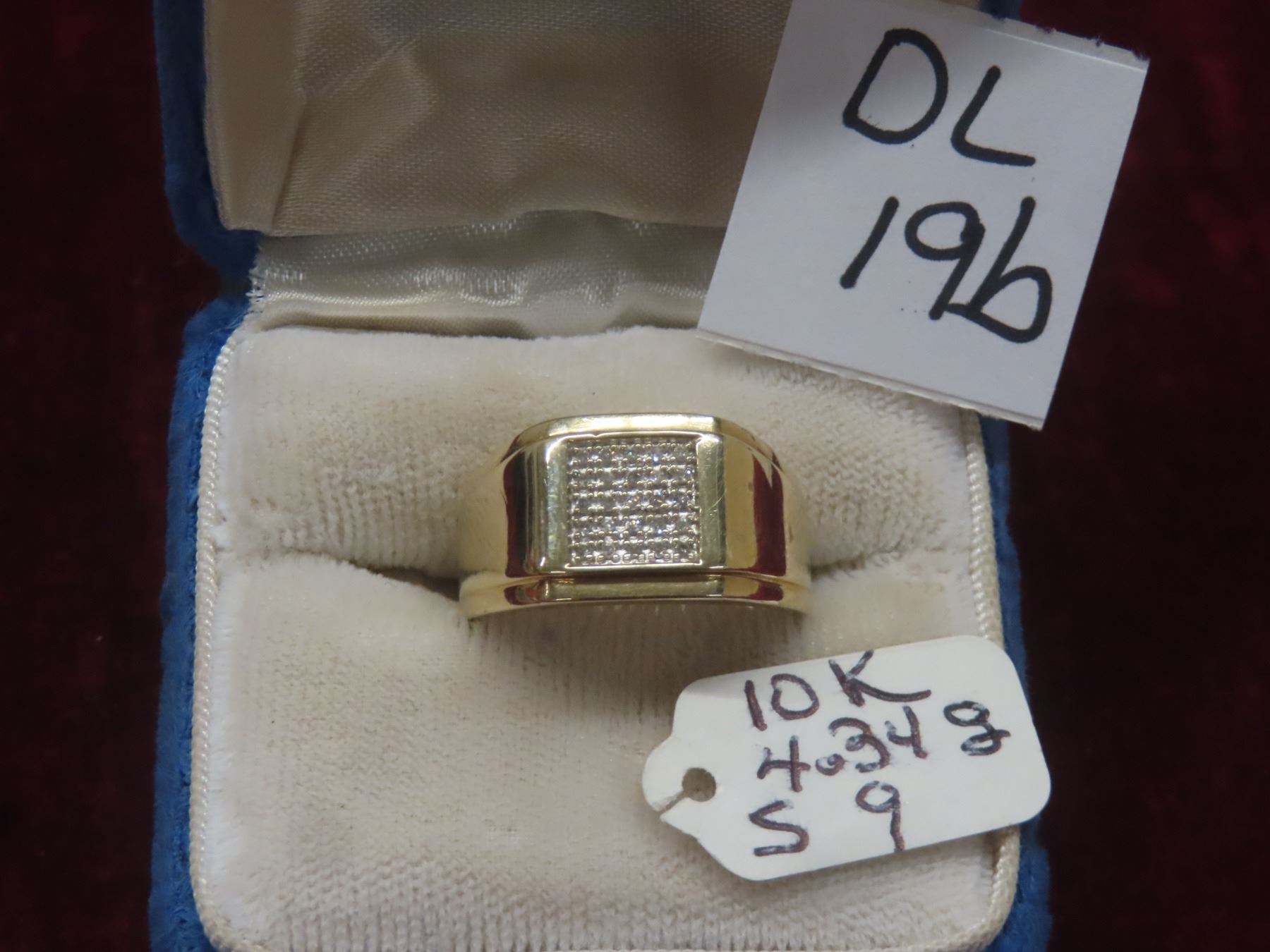 10K Gold and Diamond Ring, Size 9, Total Weight 4.34 Grams
