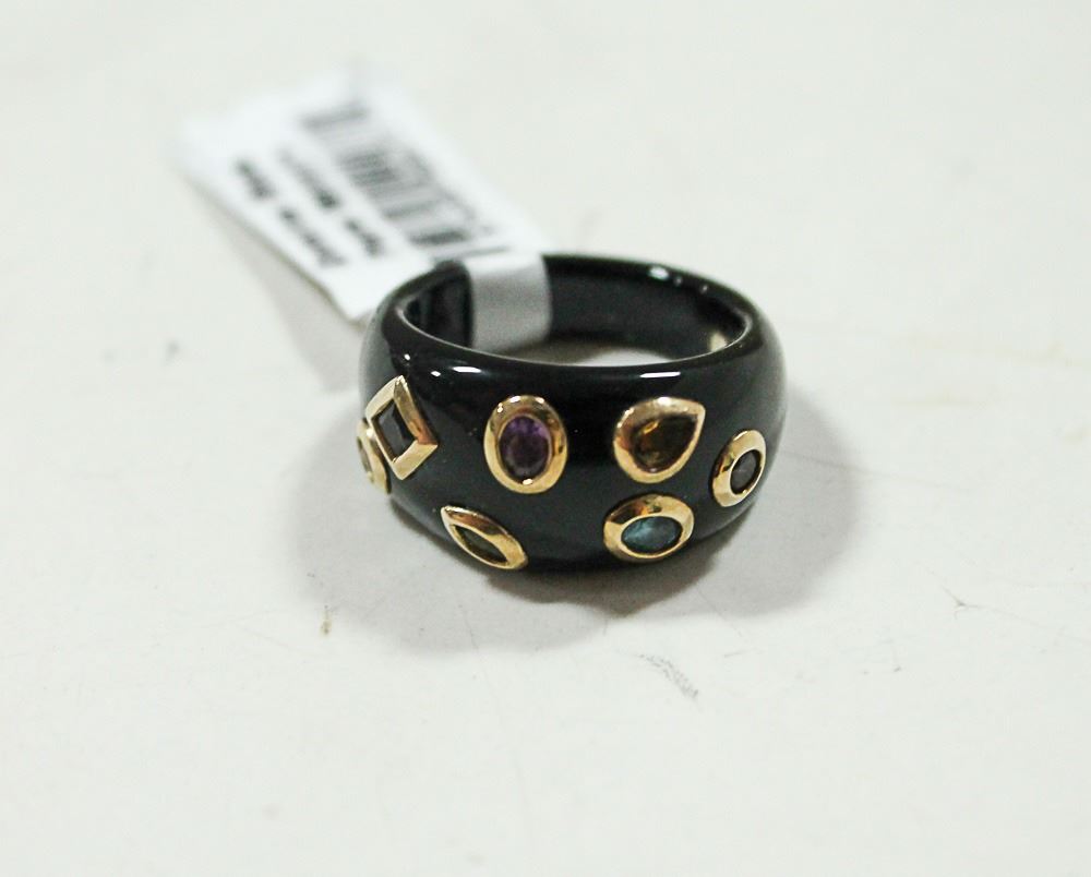10 KARAT GOLD, ONYX BAND, CITRINE, AMETHYST, PERIDOT, TOPAZ, GARNET