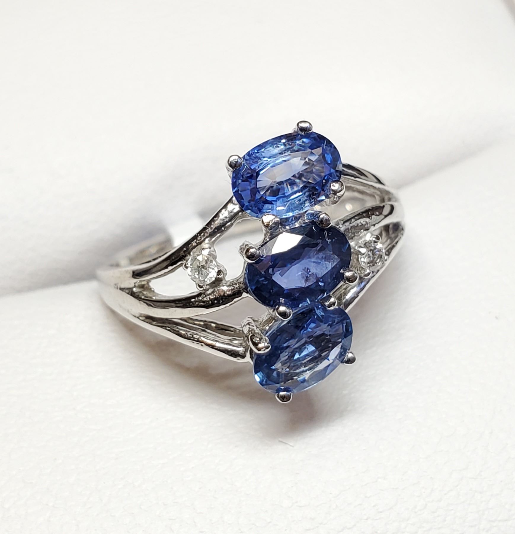 10K WHITE GOLD NATURAL SAPPHIRE(1.65CT) DIAMOND(0.02CT) RING (~SIZE 6) (~WEIGHT 2.64G), MADE IN CANADA