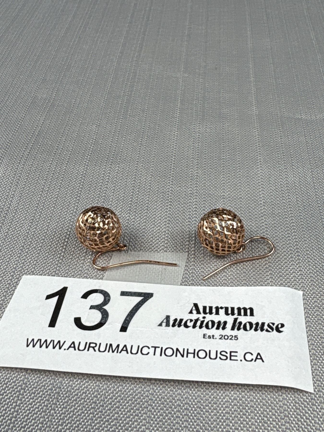 10K Rose Gold Open Work 11mm Bail Drop Hook Earrings - 1.24 Grams - Marked and Tested
