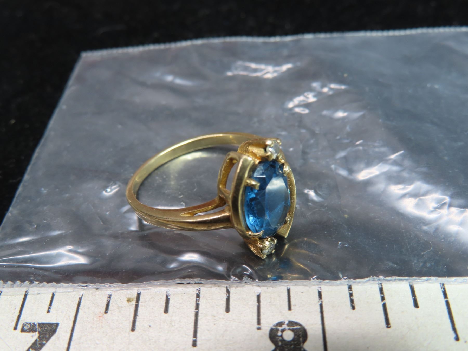 10K-SA Gold ring with blue stone & 2 diamonds (stone and diamonds authenticity unchecked)