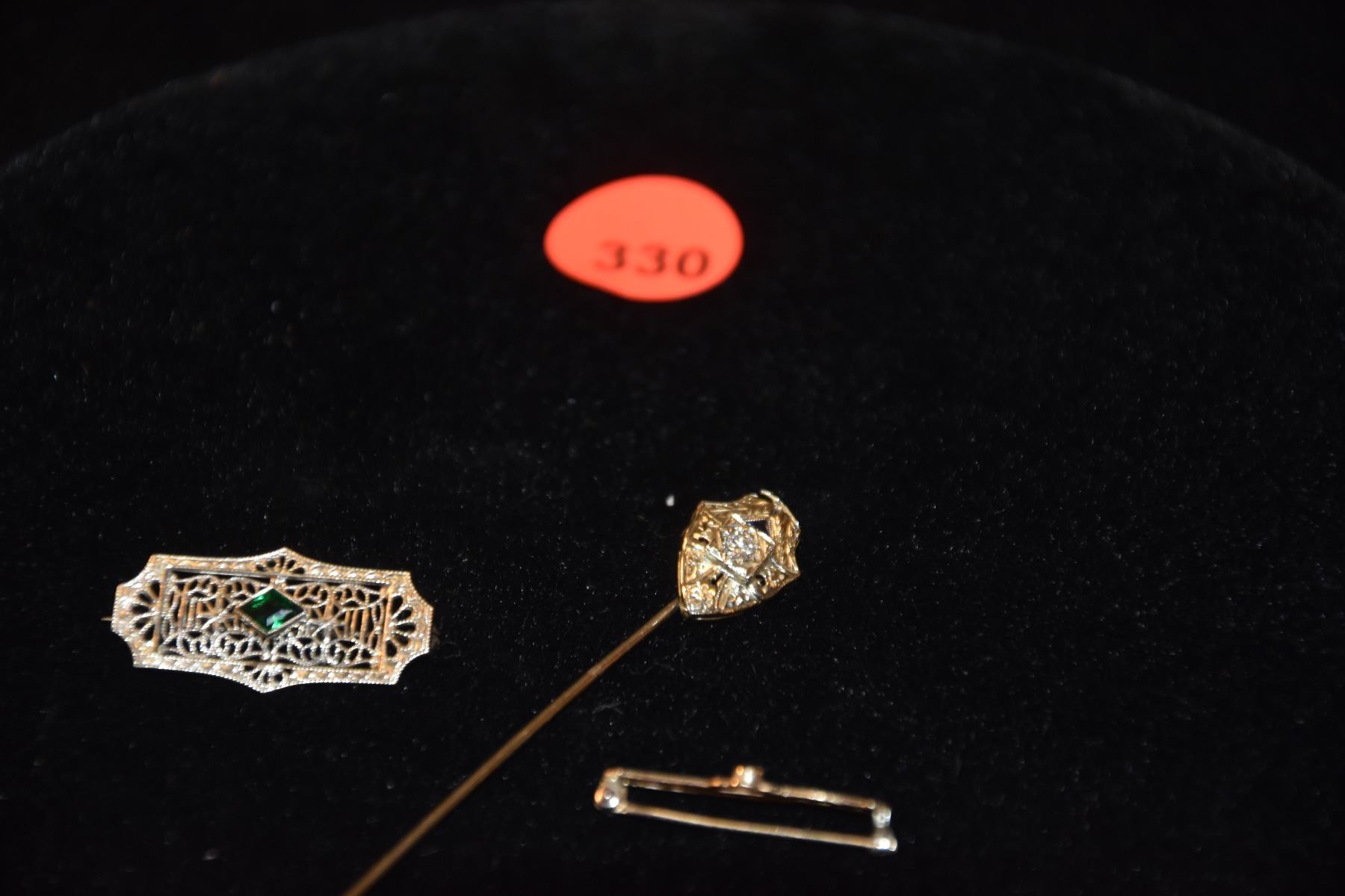 10K STICKPIN W/14K SHIELD & DIAMOND & 10K PINS (2) (4.3 GTW) (3 PCS)