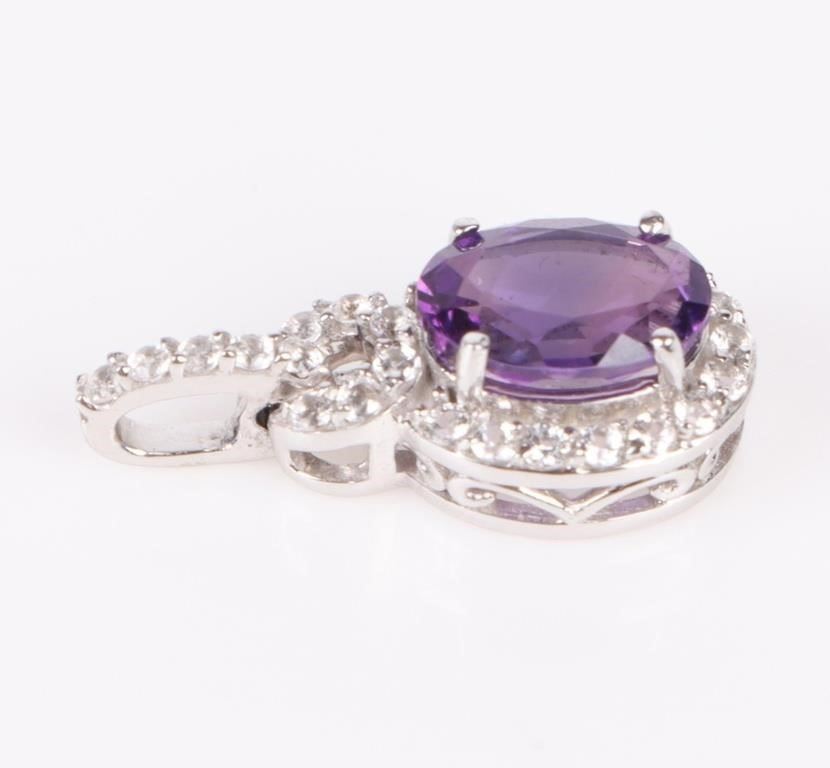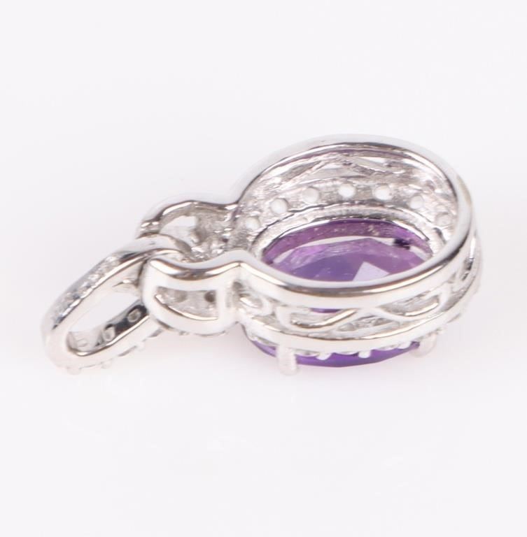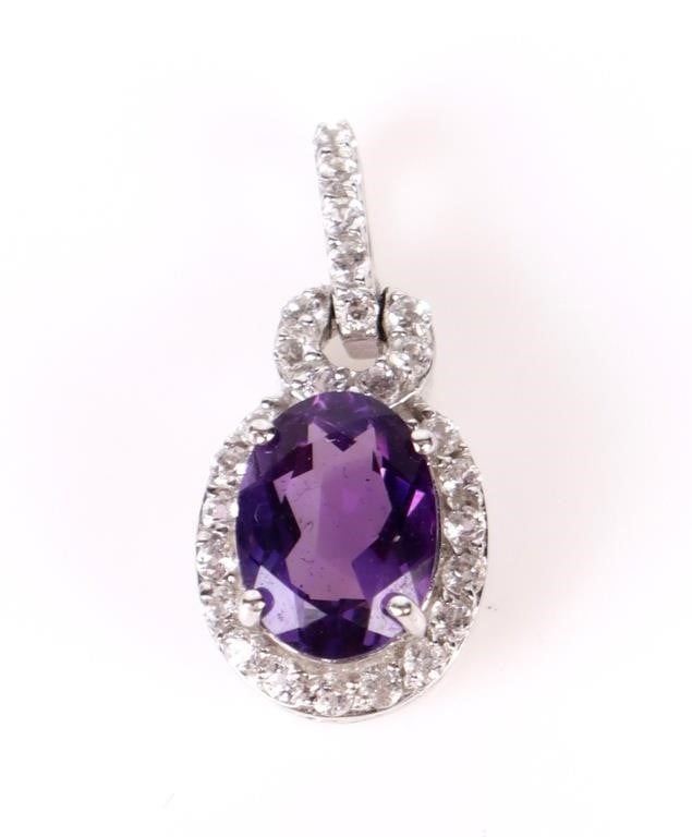 10k white gold ladies pendant with 1.0ct oval cut amethyst pendant.