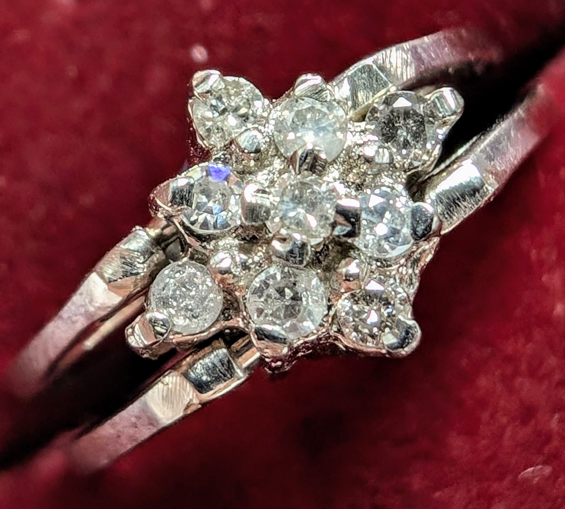 (BZ2123-28L) 0.12CT FLIPABLE 2IN1 RING, MADE IN CANADA. SIZE 6. ONE BAND HAS A CRACK