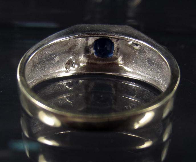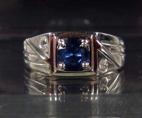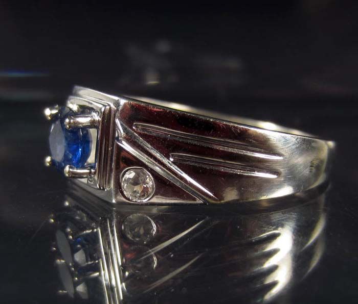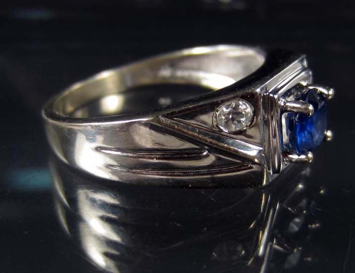.80 ct Blue Sapphire center stone accented by .10 cts of white topaz. Total weight approx. 4.5 grams.