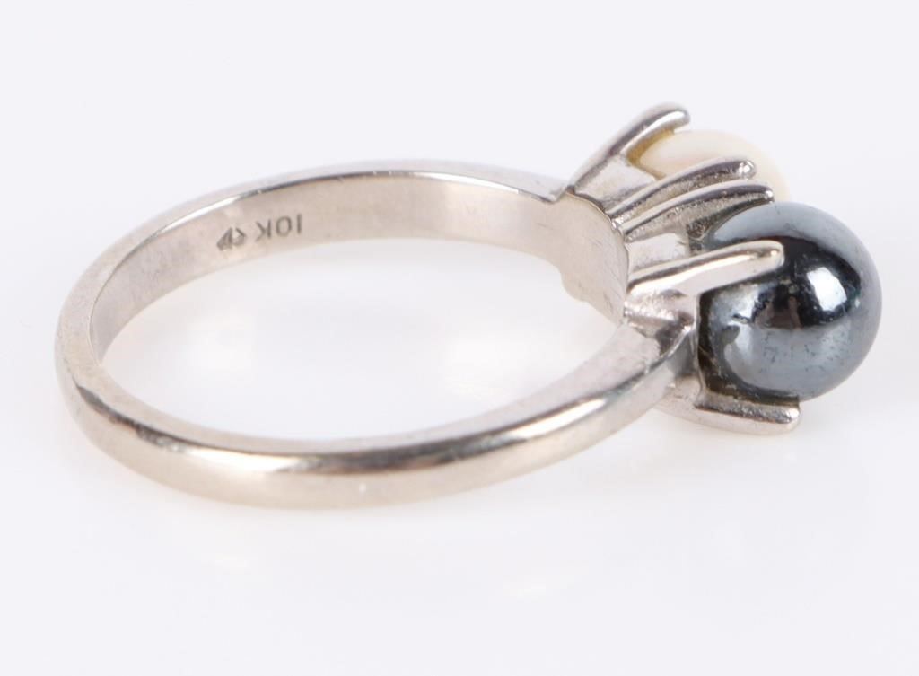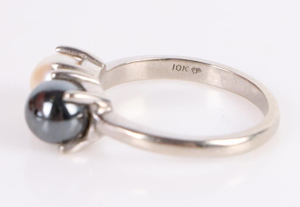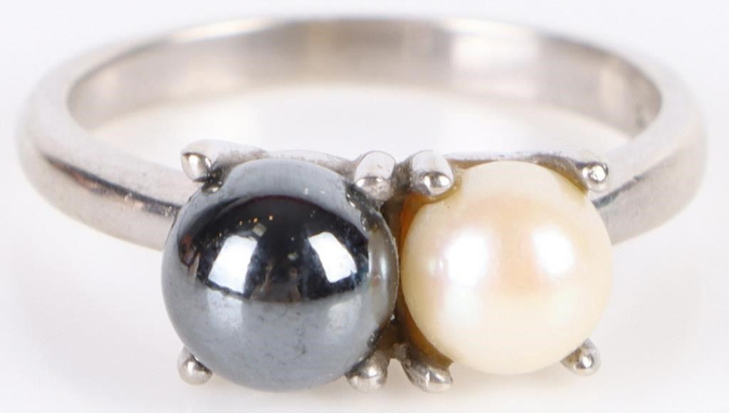 10k white gold white pearl ladies ring.