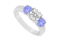 Two vibrant created tanzanites are prong-set beside a large white round cubic zirconia. These three stones are a symbol of your past present and the future. Made in 10K white gold this ring has a total gem weight (TGW) of 1.00 carat.