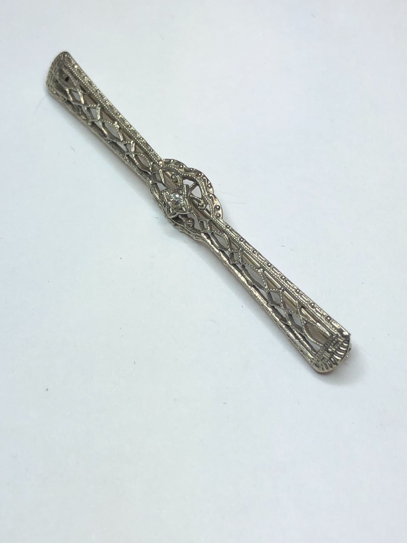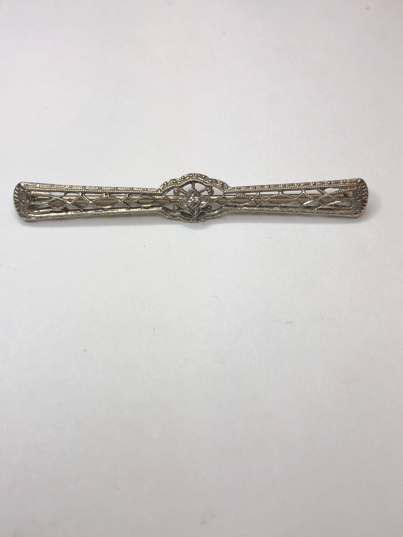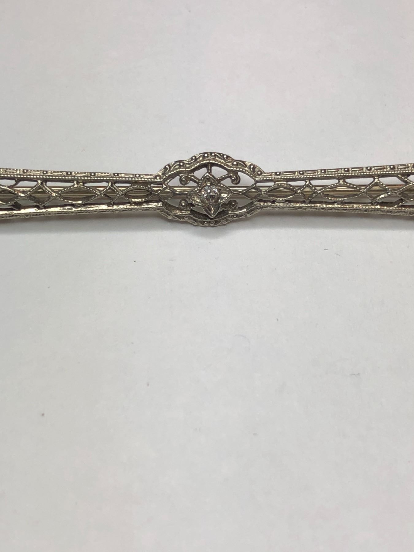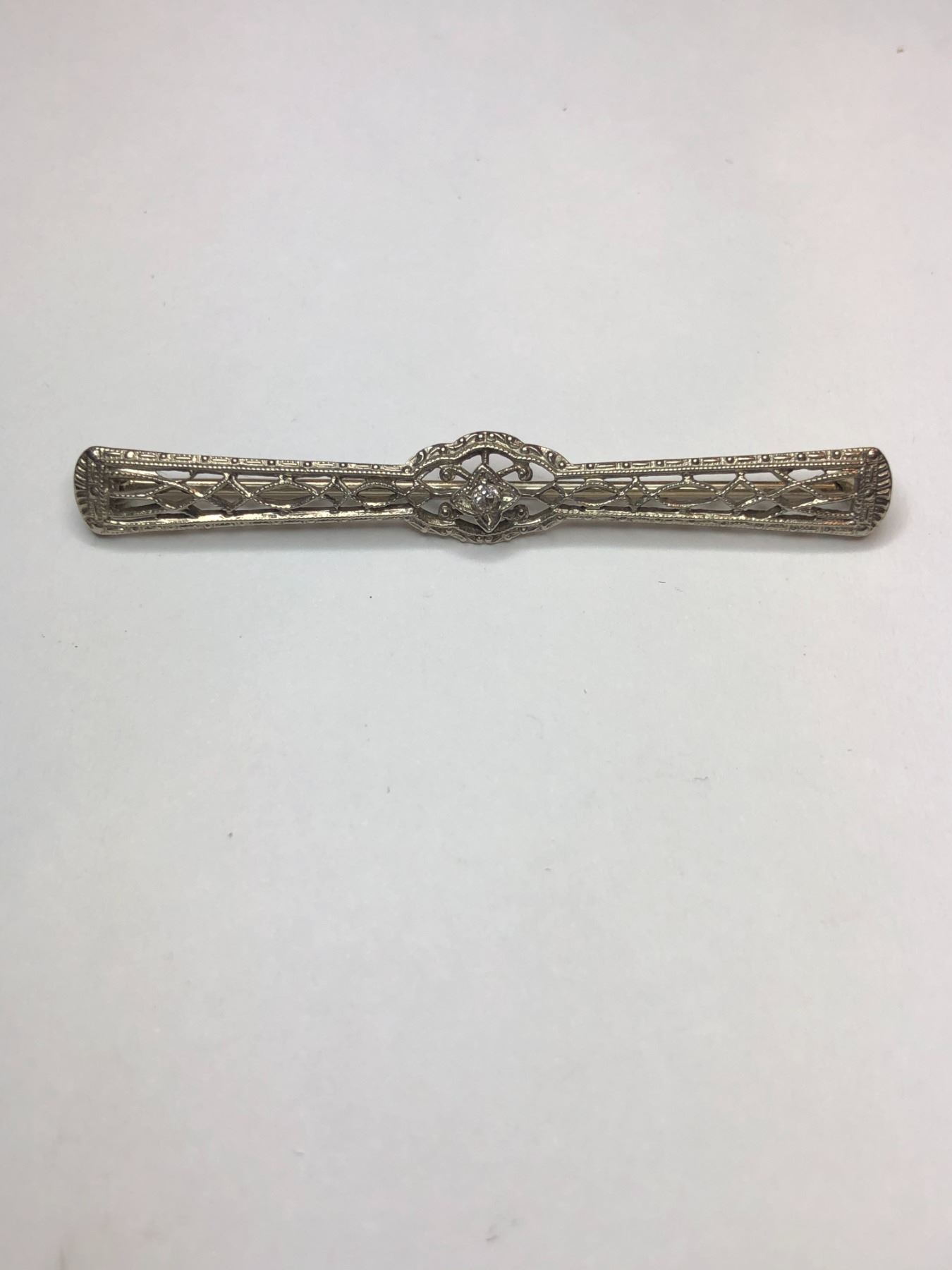 10K White Gold Diamond Edwardian Style Brooch Weight: 2.62g 10K White Gold Stone: .01ct Diamond Melee