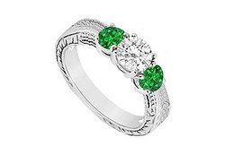 Signifying your past present and future these three scintillating stones comprise two frosted emeralds and a center-set brilliant-cut round white cubic zirconia. This three stone ring is made in 10K white gold and has a total weight (TGW) of 0.50 carat.