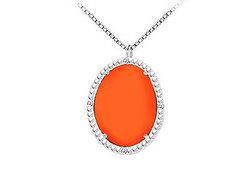 An oval shape orange chalcedony with cabochon-cut is securely held in a luscious 10K white gold prong setting & is surrounded by small gold beads along with four brilliant-cut diamonds sparkling in between gold beads. This gorgeous chalcedony pendant has a total gem weight (TGW) of 15.08 carats. It also available matching ring model no. LRBK70244W10DCOR and Earrings model no. ERBK70384W10DCOR.