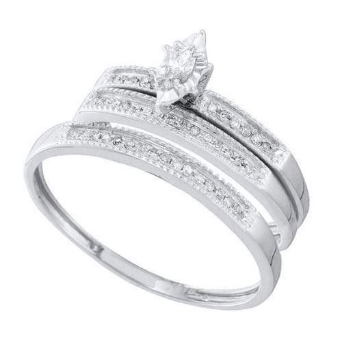 10K White-gold 0.18CT DIAMOND MQ-CENTER TRIO SET **|**|** Source: 56620 ; Metal: Gold ; Metal Purity: 10KT ; Ring Size: Women: 7, Men: 10 ; Main Stone: I1-I2 ; Total Carat: 0.18 ; Main Stone Color: H-I Color ; All diamonds are natural but colored diamonds are enhanced.