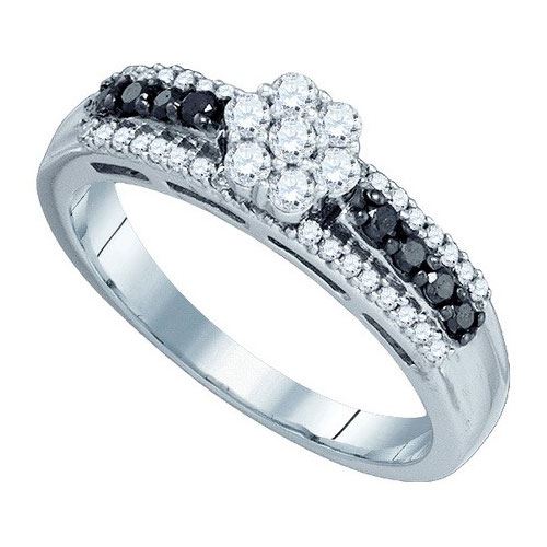 10K White-gold 0.48CTW BLACK DIAMOND FLOWER RING **|**|** Source: 83307 ; Metal: Gold ; Metal Purity: 10KT ; Ring Size: 7 ; Main Stone: I1-I2 ; Total Carat: 0.48 ; Main Stone Color: H-I Color ; All diamonds are natural but colored diamonds are enhanced.