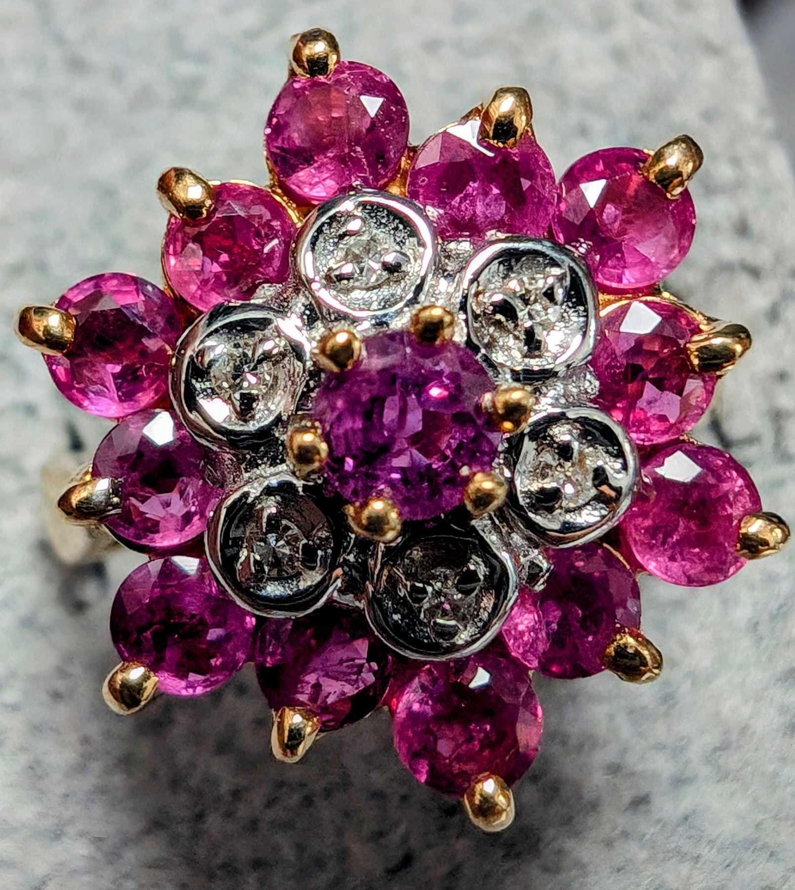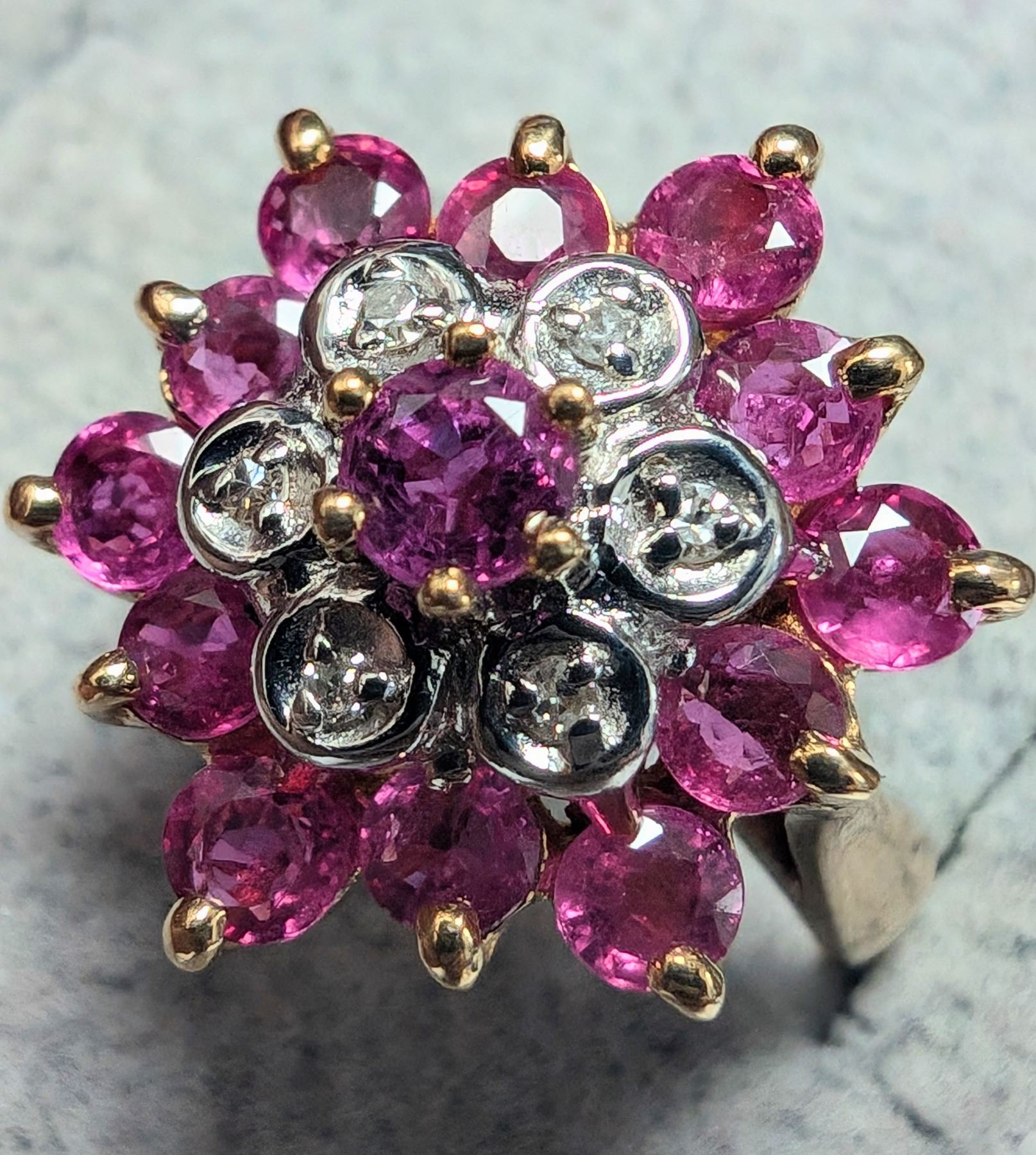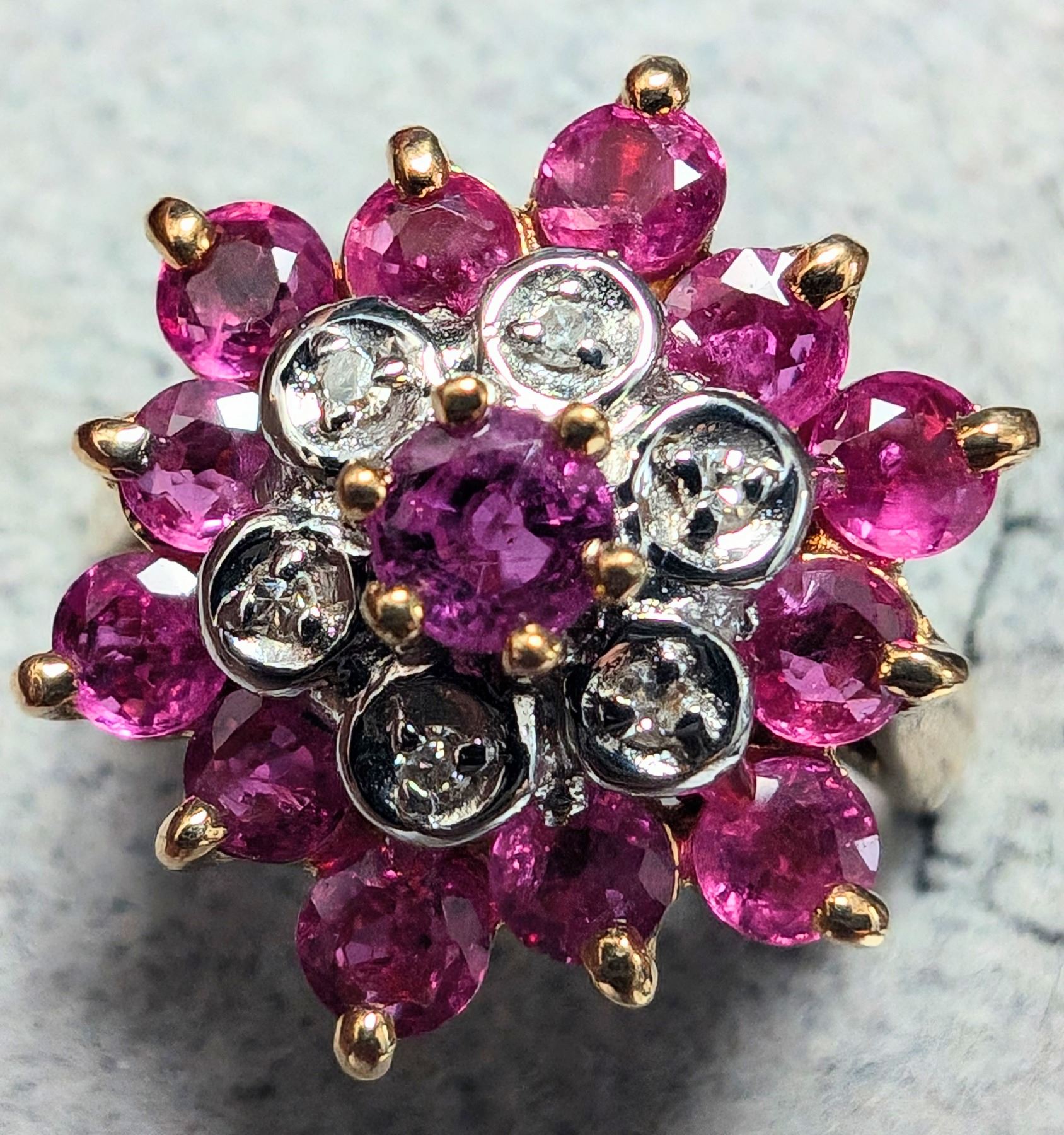10K YELLOW GOLD 4.39G RUBY 1CT DIAMOND 0.03CT RING