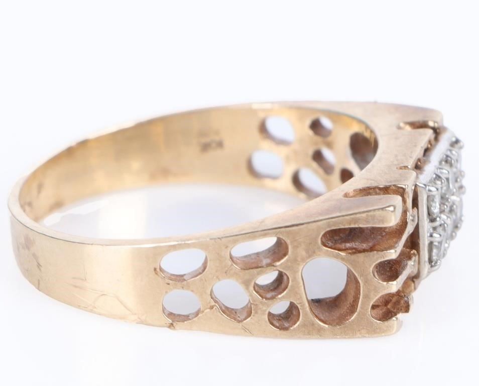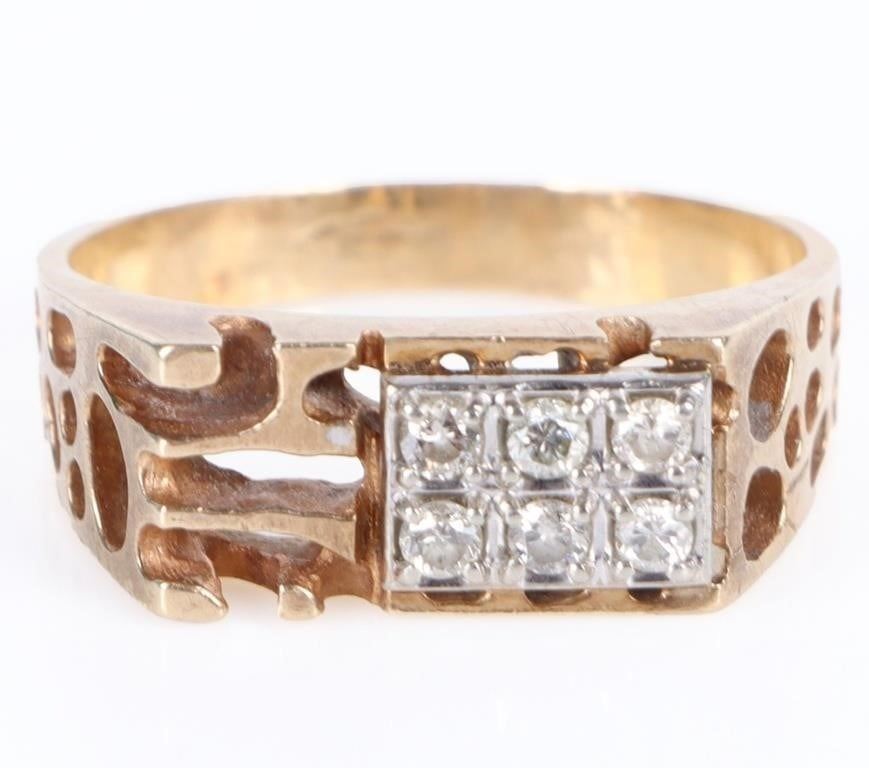 10k yellow gold abstract diamond men's ring with six 0.04ct round diamonds.