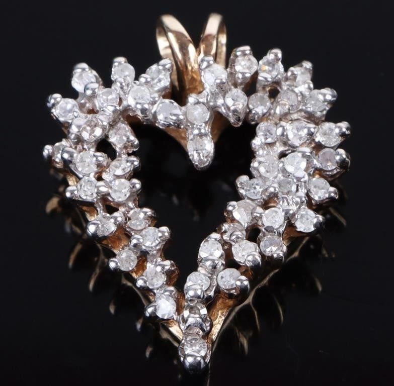 10k yellow gold diamond ladies heart pendant with fifty 0.01ct round diamonds.