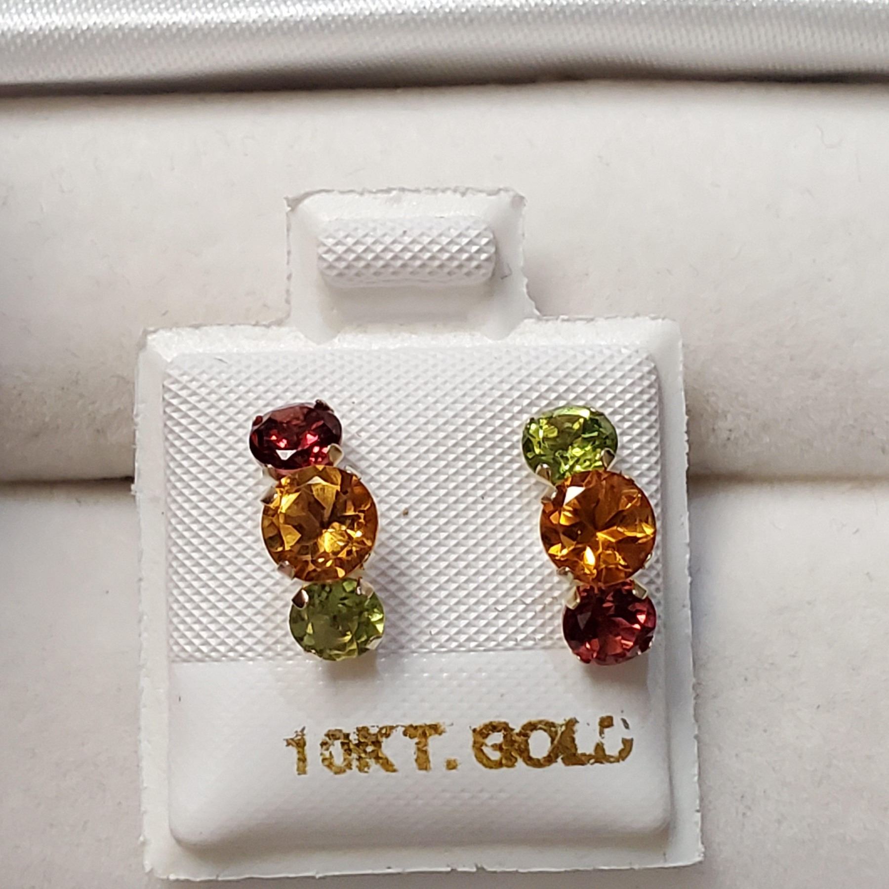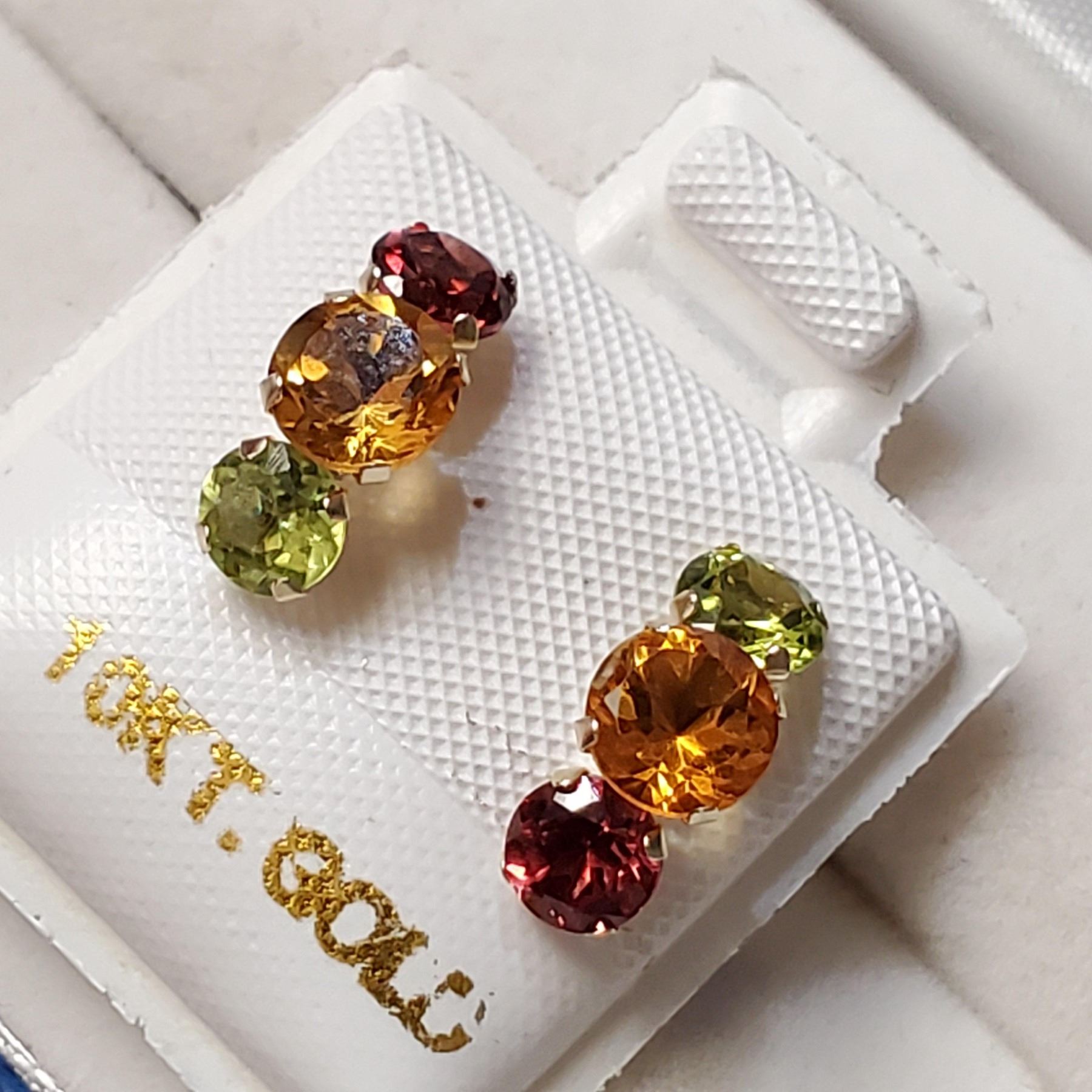 10K YELLOW GOLD EMERALD,RUBY,CITRINE EARRINGS