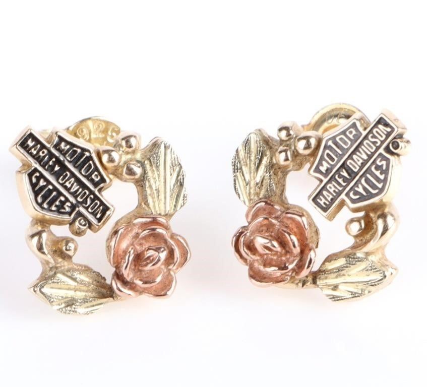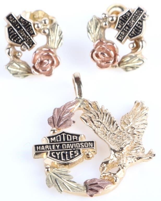 10K yellow and rose gold Harley Davidson matching earrings and pendant.