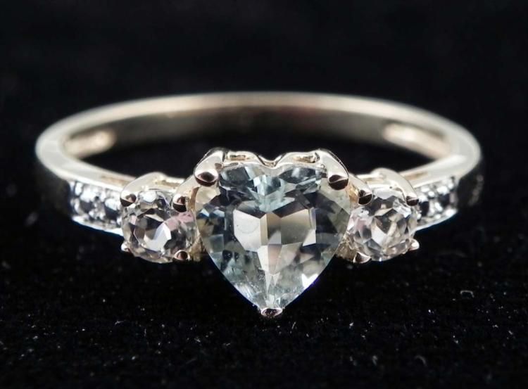10K WHITE GOLD HEART SHAPE DIAMOND RING * Gemstone: TOPAZ Total Ct. Weight: .90