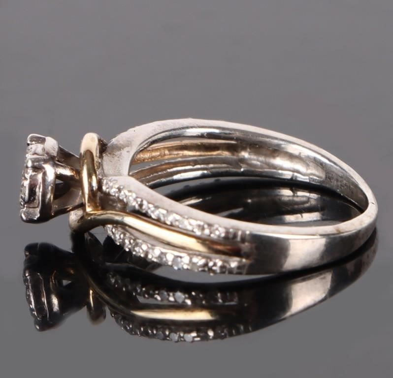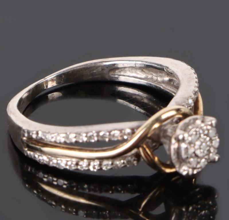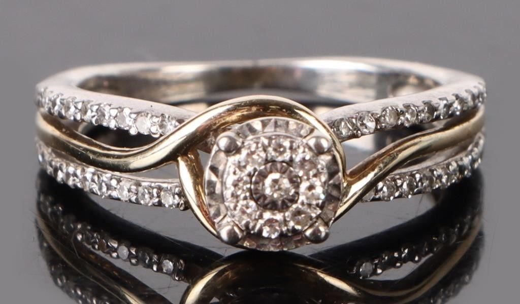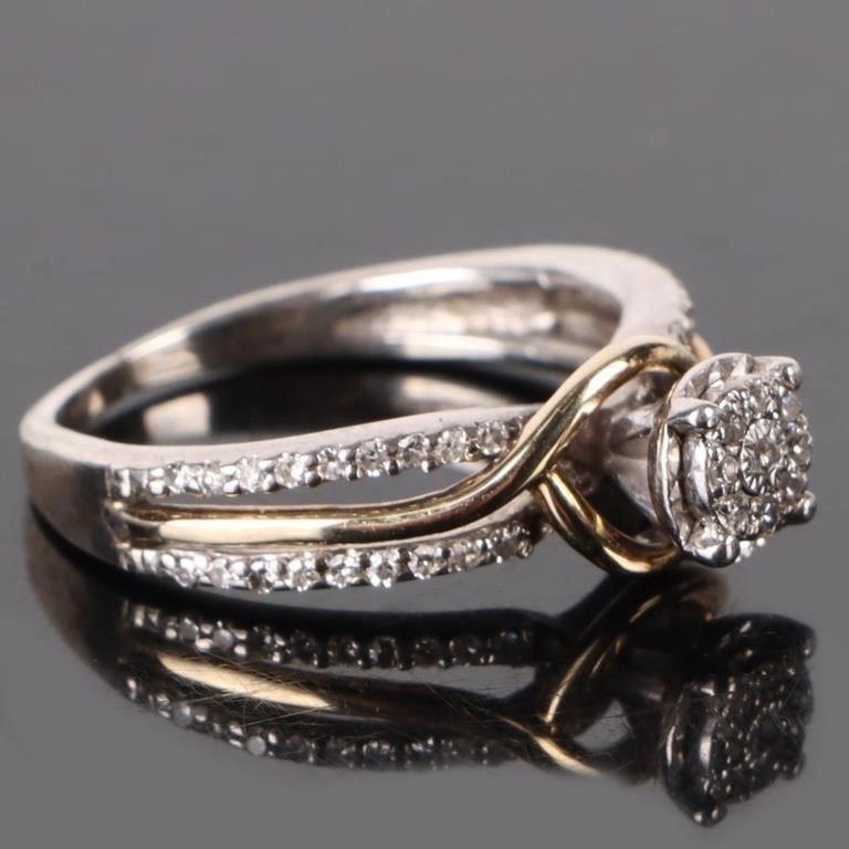 10k yellow and white gold diamond ladies ring with forty-seven 0.01ct round diamond.