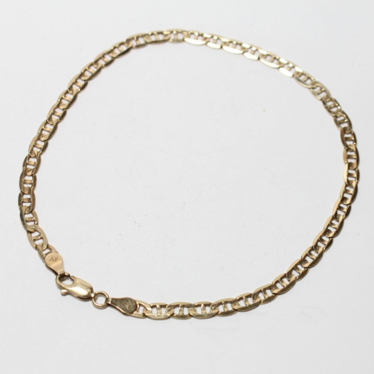 10K Yellow Gold Anchor Chain Bracelet. Measures 10" in length with a total weight of 4.71 grams.