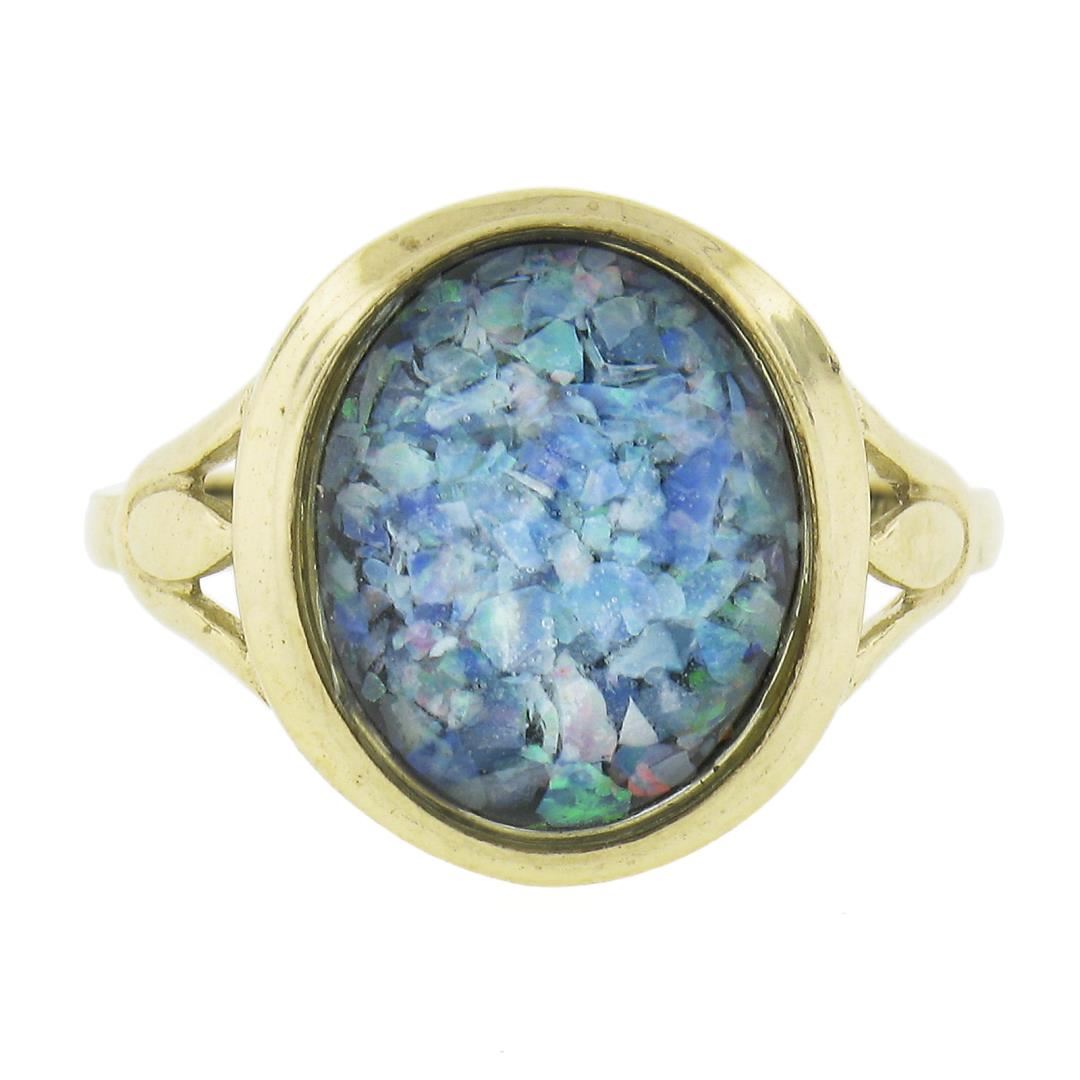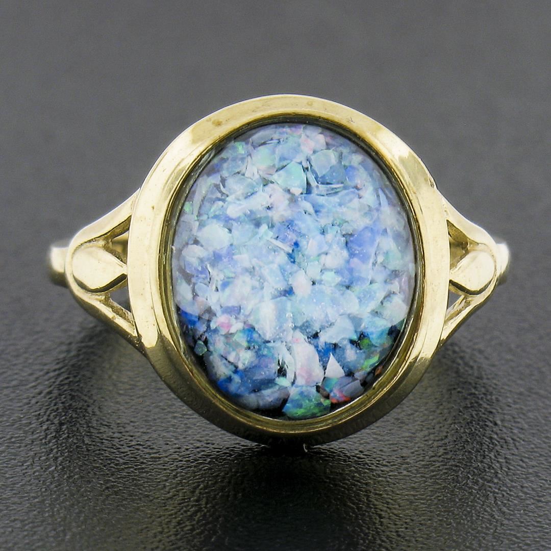 10K Yellow Gold Bezel Oval Triplet Opal on Black Onyx Domed Solitaire Band Ring