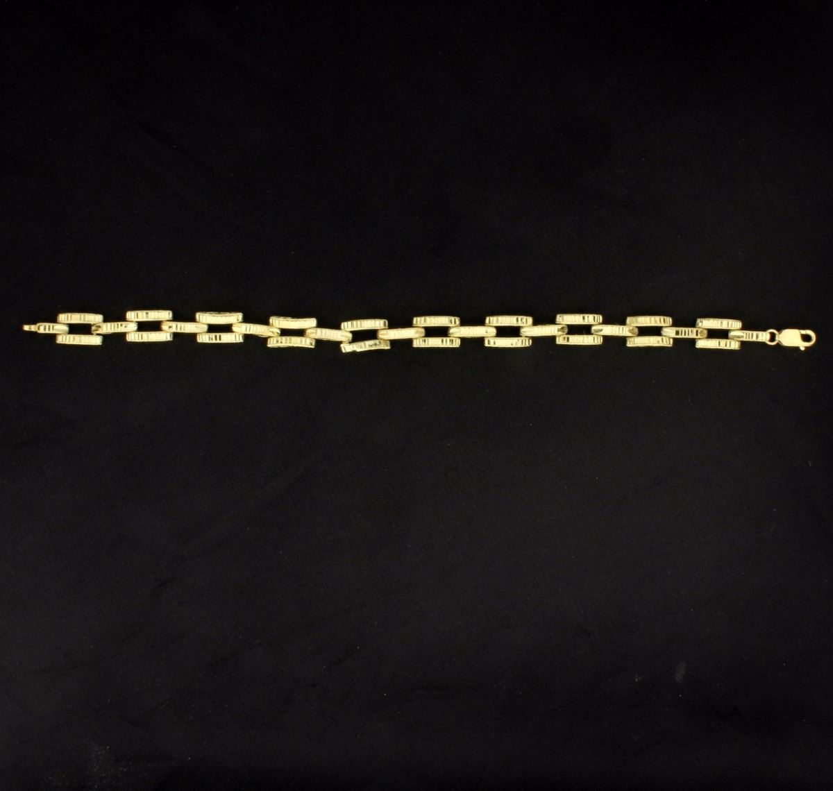 The bracelet is 7 inches long and 6.9mm wide. It has a lobster clasp. 5.1g