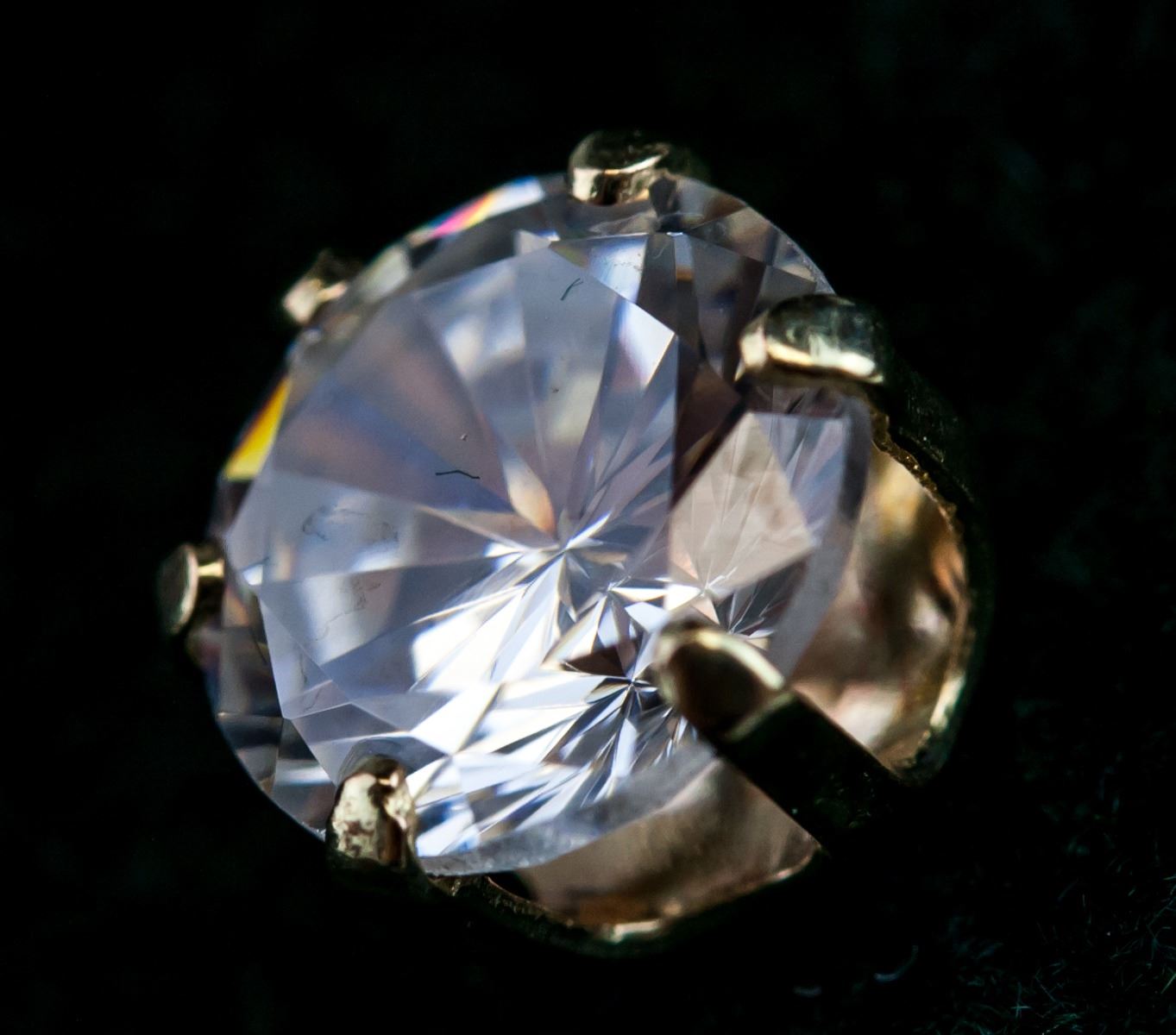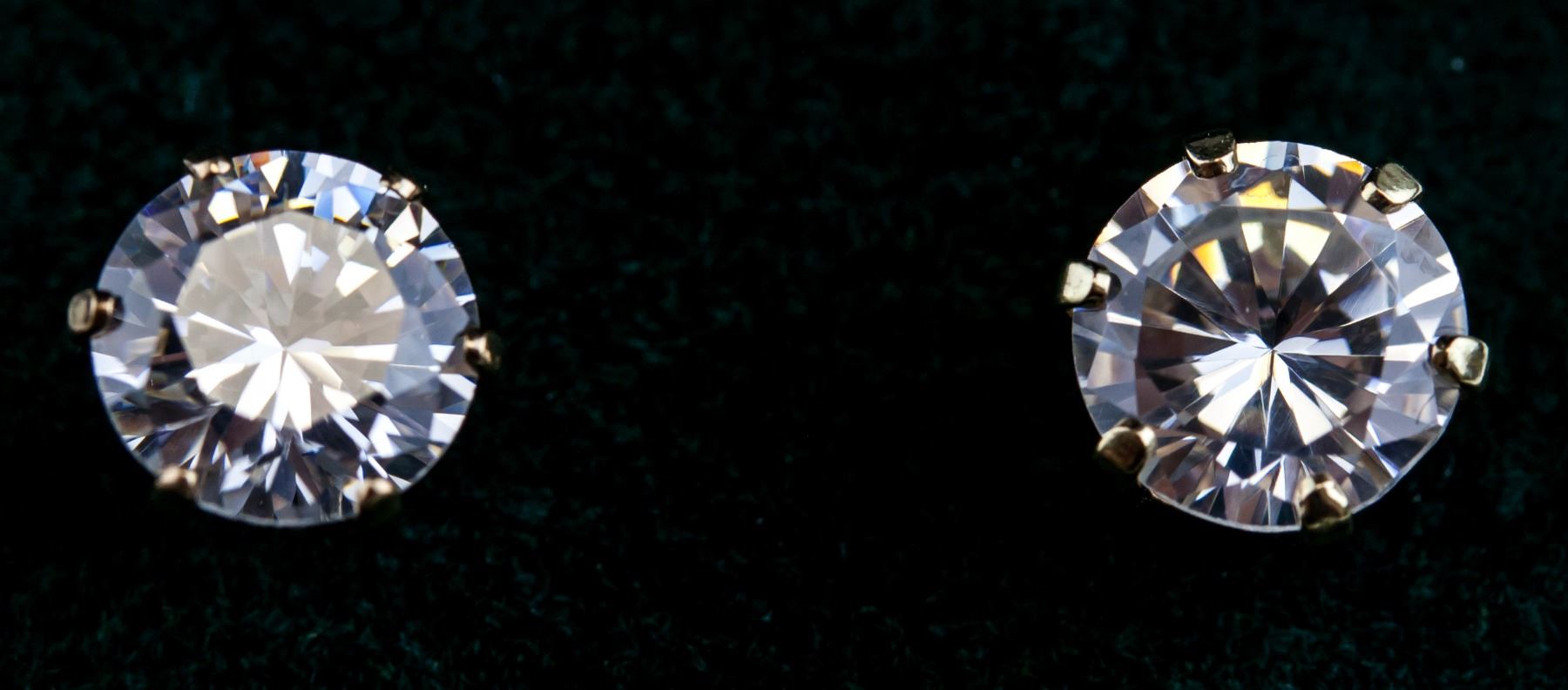 10K yellow gold cubic zirconia earrings. Diameter 6 mm, 1.25 grams. Made in Canada. Suggested Retail value $360.