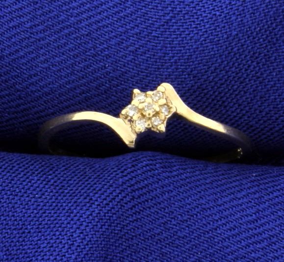 This ring has Seven 1/2pt diamonds. Size 8 1/4 1.0g