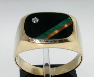 10K Yellow Gold Onyx & Diamond Ring. The total ring's weight is 4.8 grams. The weight of Diamond: 3pts. The measurement of ring: 25x20mm. The size of ring: 9.25.