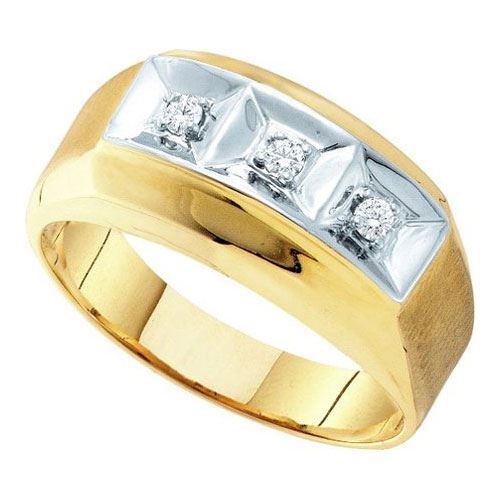 10K Yellow-gold 0.09CTW DIAMOND 3 STONE MENS RING **|**|** Source: 26398 ; Metal: gold ; Metal Purity: 10KT ; Ring Size: 7 ; Sizeable: TRUE ; Main Stone: I1-I2 ; Total Carat: 0.09 ; Main Stone Color: H-I Color ; All diamonds are natural but colored diamonds are enhanced.