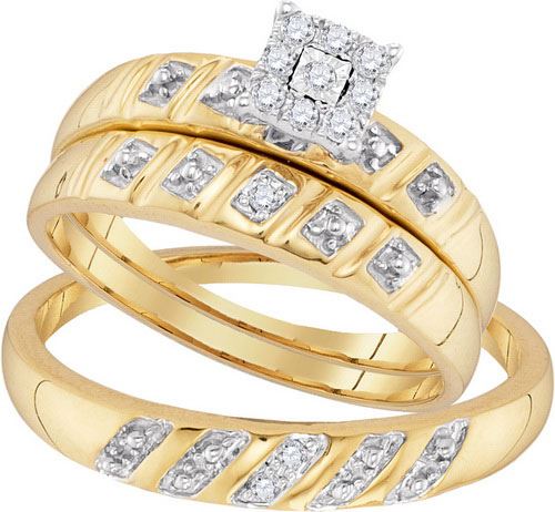 10K Yellow-gold 0.13CTW DIAMOND FASHION TRIO-SET **|**|** Source: 96757 ; Metal: gold ; Metal Purity: 10KT ; Ring Size: 7 ; Sizeable: TRUE ; Main Stone: I1-I2 ; Total Carat: 0.13 ; Main Stone Color: H-I Color ; All diamonds are natural but colored diamonds are enhanced.