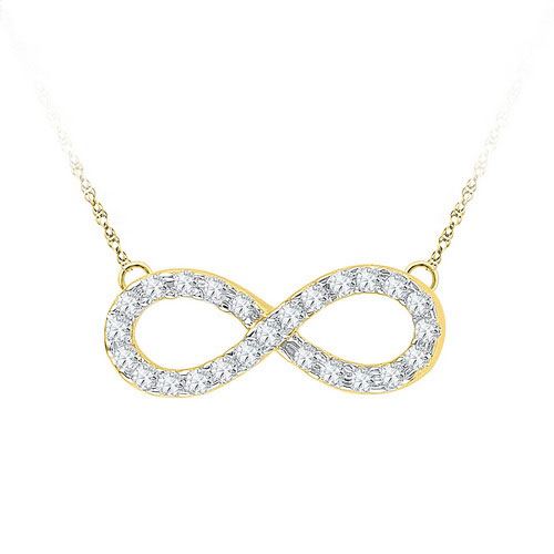 10K Yellow-gold 0.20CTW DIAMOND INFINITY NECKLACE **|**|** Source: 97439 ; Metal: gold ; Metal Purity: 10KT ; Main Stone: I1-I2 ; Total Carat: 0.2 ; Main Stone Color: H-I Color ; All diamonds are natural but colored diamonds are enhanced.