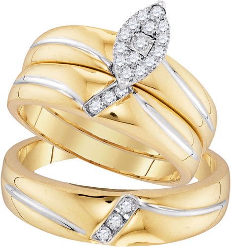 10K Yellow-gold 0.25CTW DIAMOND FASHION TRIO SET **|**|** Source: 96733 ; Metal: gold ; Metal Purity: 10KT ; Ring Size: 7 ; Sizeable: TRUE ; Main Stone: I1-I2 ; Total Carat: 0.25 ; Main Stone Color: H-I Color ; All diamonds are natural but colored diamonds are enhanced.