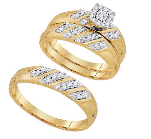 10K Yellow-gold 0.28CTW DIAMOND FASHION TRIO SET **|**|** Source: 93848 ; Metal: gold ; Metal Purity: 10KT ; Ring Size: 7 ; Sizeable: TRUE ; Main Stone: I1-I2 ; Total Carat: 0.28 ; Main Stone Color: H-I Color ; All diamonds are natural but colored diamonds are enhanced.