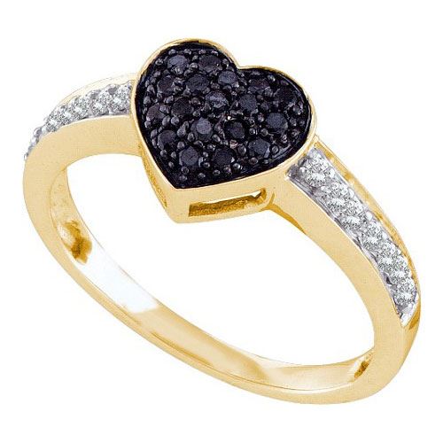10K Yellow-gold 0.34CTW BLACK DIAMOND HEART RING **|**|** Source: 60460 ; Metal: Gold ; Metal Purity: 10KT ; Ring Size: 7 ; Main Stone: I1-I2 ; Total Carat: 0.34 ; Main Stone Color: H-I Color ; All diamonds are natural but colored diamonds are enhanced.