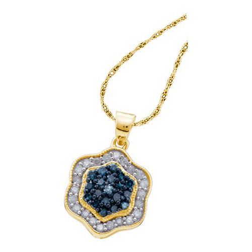 10K Yellow-gold 0.50CTW BLUE DIAMOND FLOWER PENDANT **|**|** Source: 58930 ; Metal: gold ; Metal Purity: 10KT ; Main Stone: I1-I2 ; Total Carat: 0.5 ; Main Stone Color: H-I Color ; All diamonds are natural but colored diamonds are enhanced.